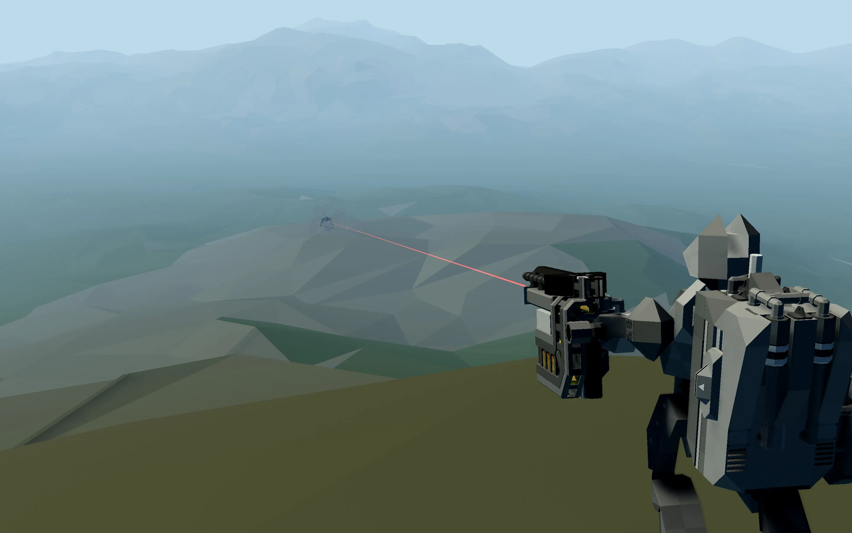 The cockpit is located in the torso and is equipped with a head tracked monitor allowing full 90° head rotation and aiming of the arms with just the camera (note: this system does use a bug if it breaks I'm not fixing it)
