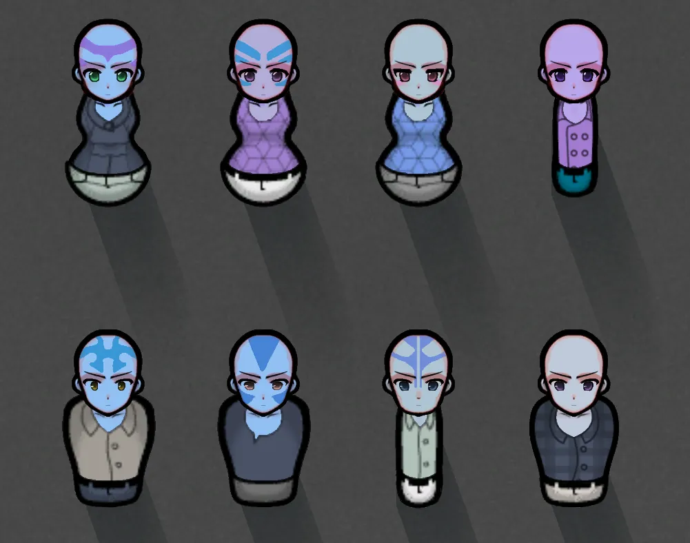 With this Patch Crystalloids are compatible with [NL] Facial Animation - WIP. It adds six facial markings, three for each gender. But it's also possible to have a pawn without a marking. With the Character Editor you can choose a facial marking for your pawn with the button and slider for body addons.
