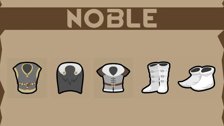 Bar Maid Dress, Commoner Tunic, Fancy Tunic, Jerkin , Old Shirt, Rags, Royal Hose , Royal Tunic, Simple Shirt, Trousers, Blacksmith Gloves, Doublet, Gambeson, Hand Shackles, Hunting Gloves, Leather Vambrace, Noble Boots, Noble Gloves, Noble Shoes, Padded Leather Vest, Peasant Shoes, Shackles, Splinted Vambrace, Town Boots, Town Gloves, Travel Boots, Cloak, Fur Cloak, Long Gambeson, Short Coat , Winter Coat, Cap, Chaperon, Cowl,Forester Hat, Forester Feathered Hat, Merchant Hat, Pious Cap