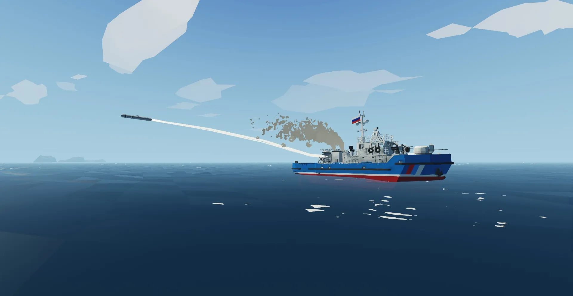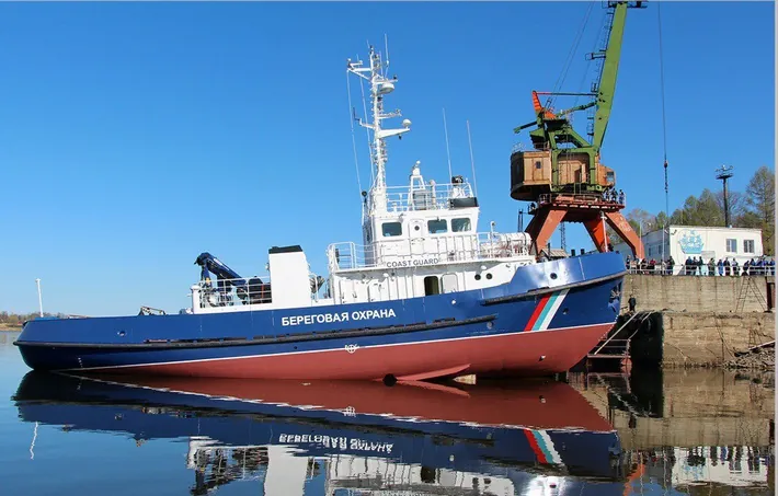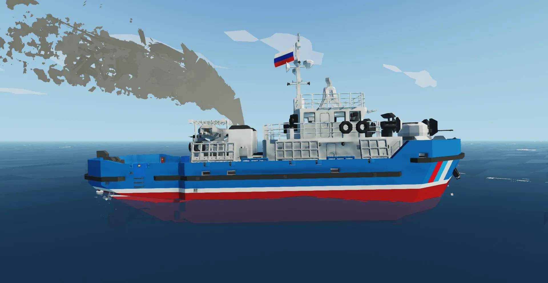 Patrol ship - tugboat based on real "патрульный катер проекта 1496М1 «Ламантин»" made by Vimpel shipbuilding plant.