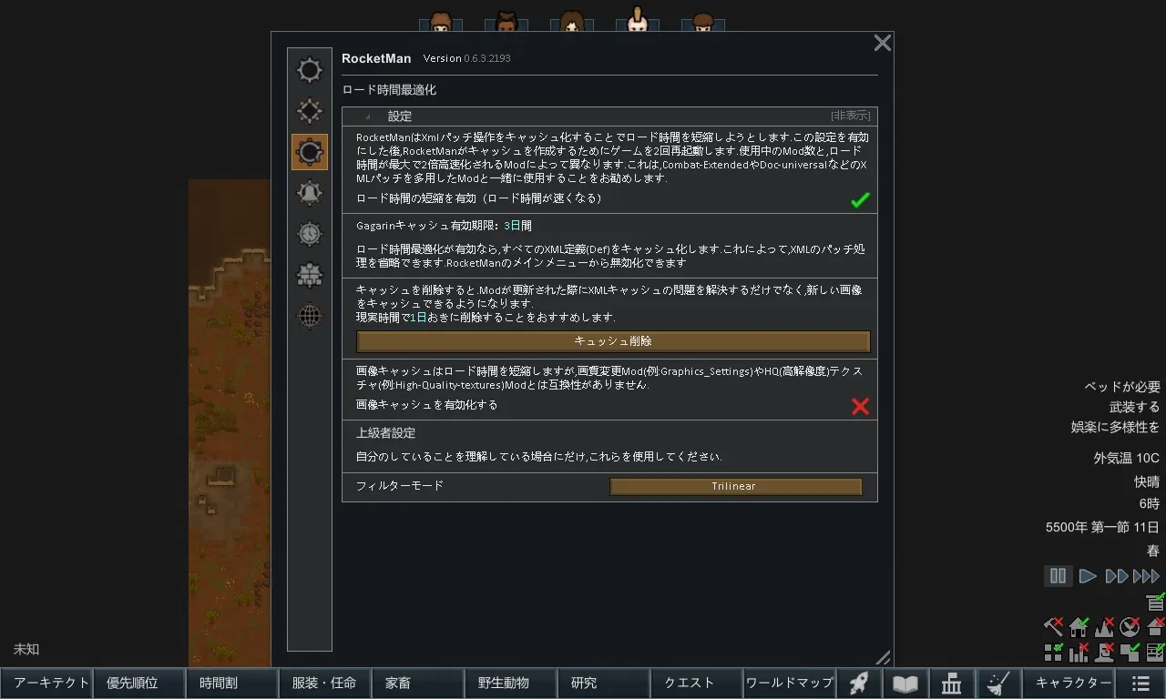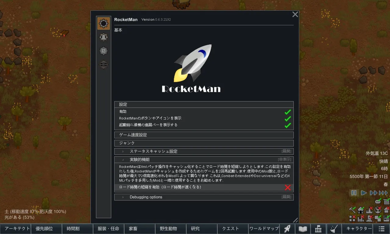 RocketManは、RimWorldのパフォーマンスを向上させるために設計されたMod です。