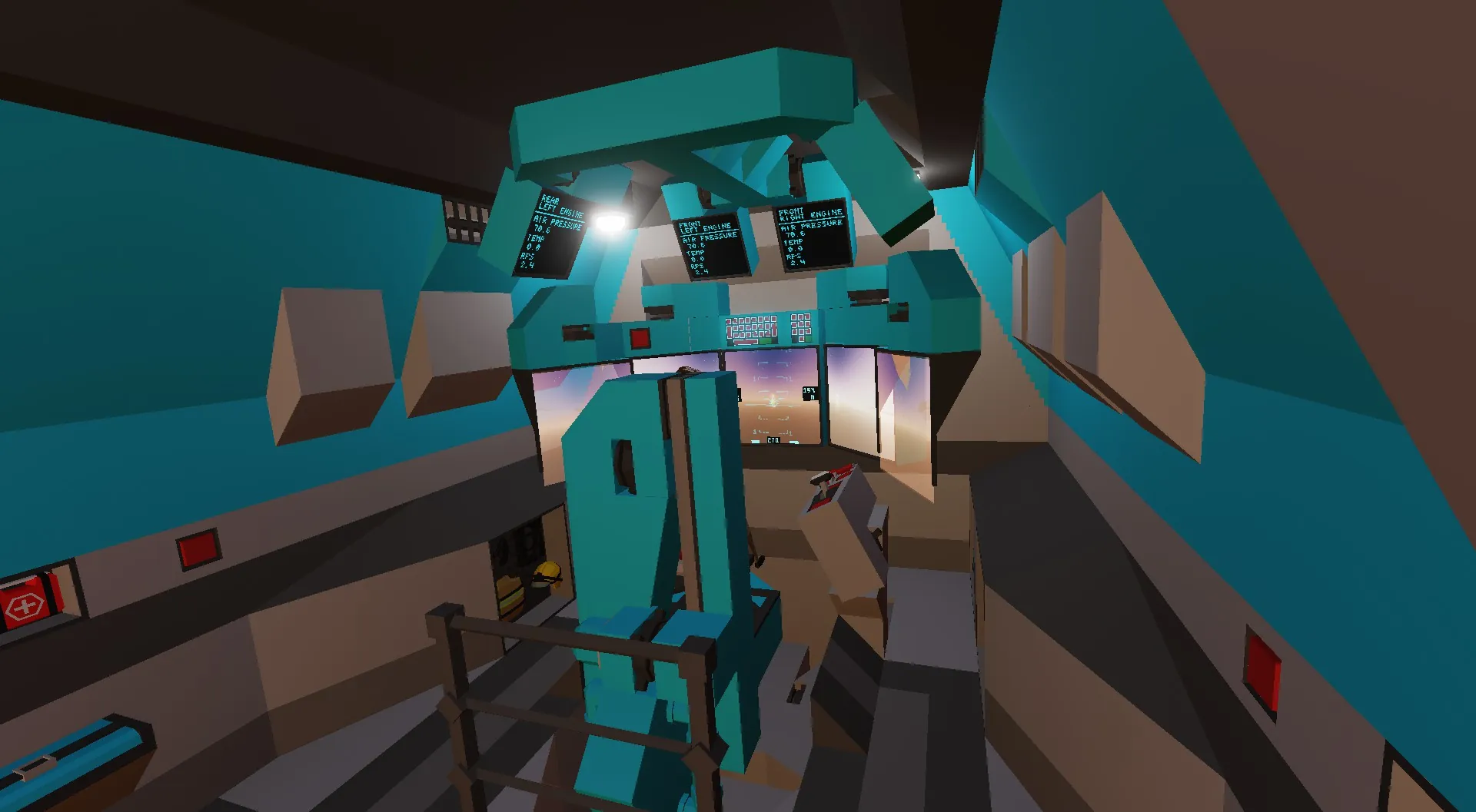 replaced the 9x5 moniter and side moniters with smaller moniters that rap around the pilot for better visibility of their surroundings and to easily see the conditions of the Vtol Engines.