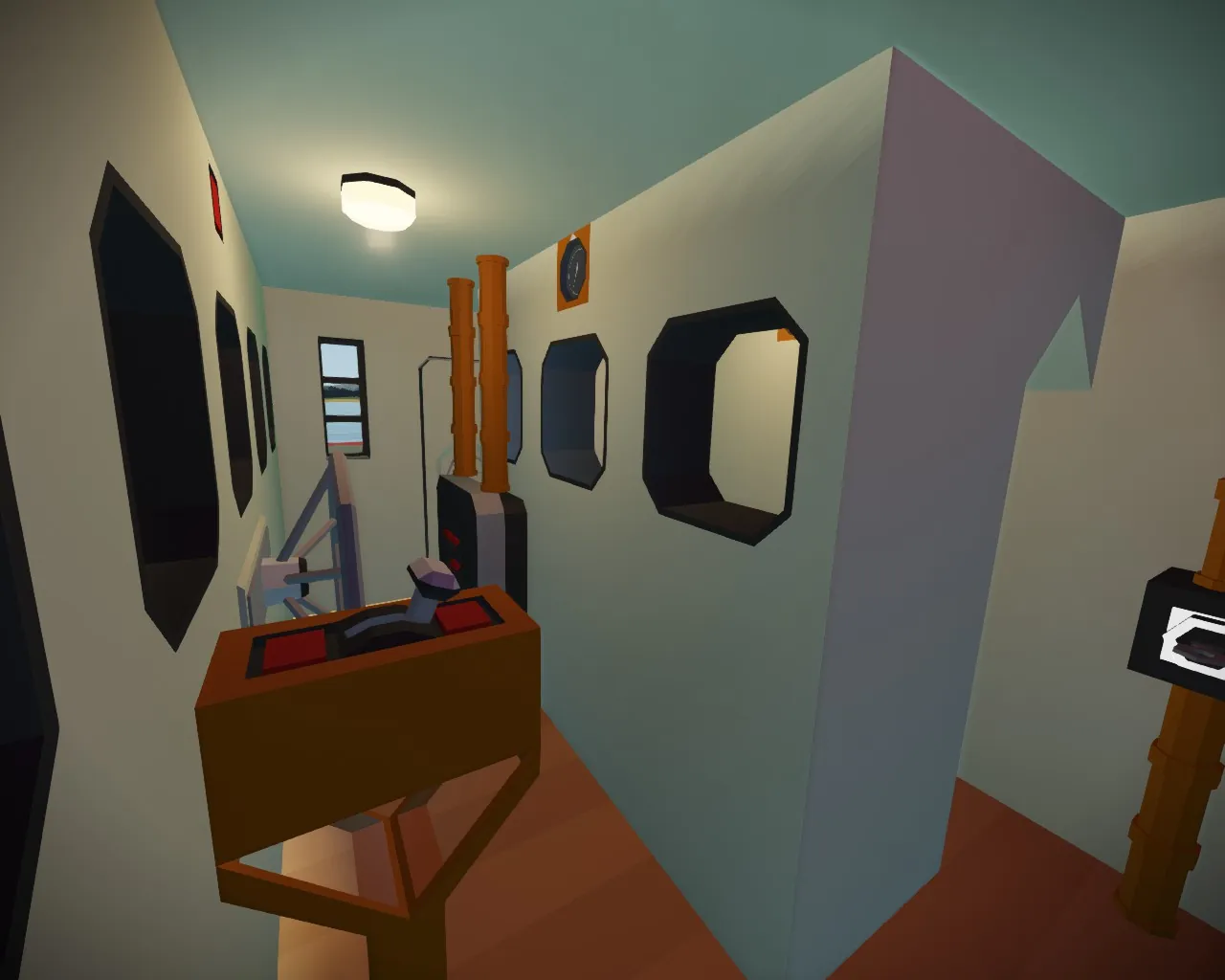 In the engine room there is a telegraph that powers the ship. The boiler works but it is only for decorational smoke.