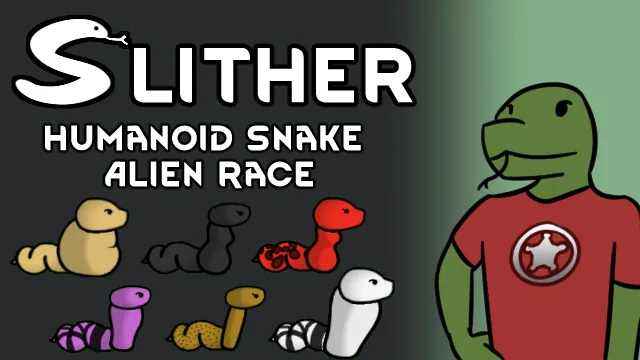 Slithers are a playable race of anthropomorphic snakes created using Humanoid Alien Races 2.0. Slithers come with a variety of colors, tail patterns, and even head shapes, giving them a ton of visual variety! Their gameplay differences are minimal, so they can easily be added to a standard colony without feeling overpowered or out of place.