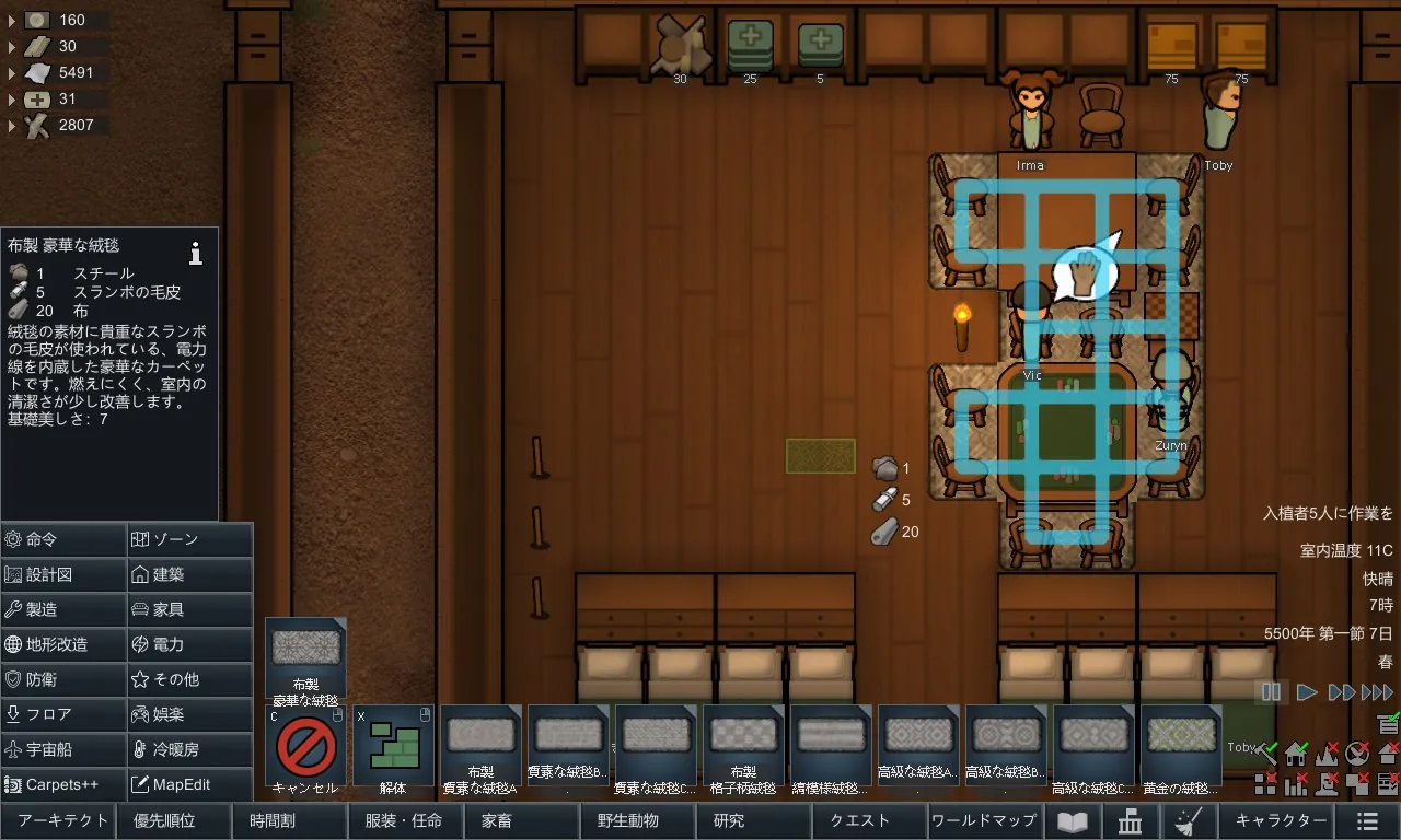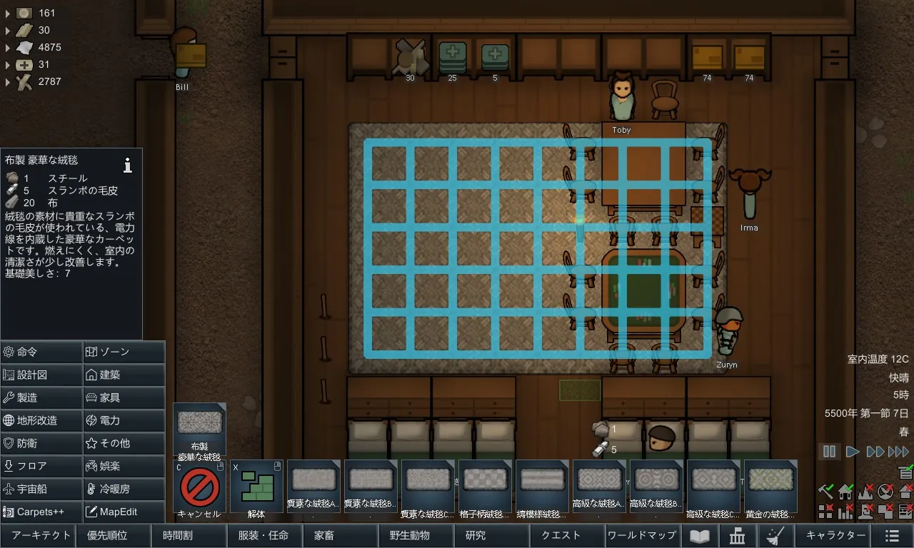 あなたは、絨毯(カーペット)の大きさを自分で選び、部屋の広さに合わせた絨毯を敷いた自分のコロニーを作りたくなかったことはありませんか?このModはそんなあなたのためのものです!