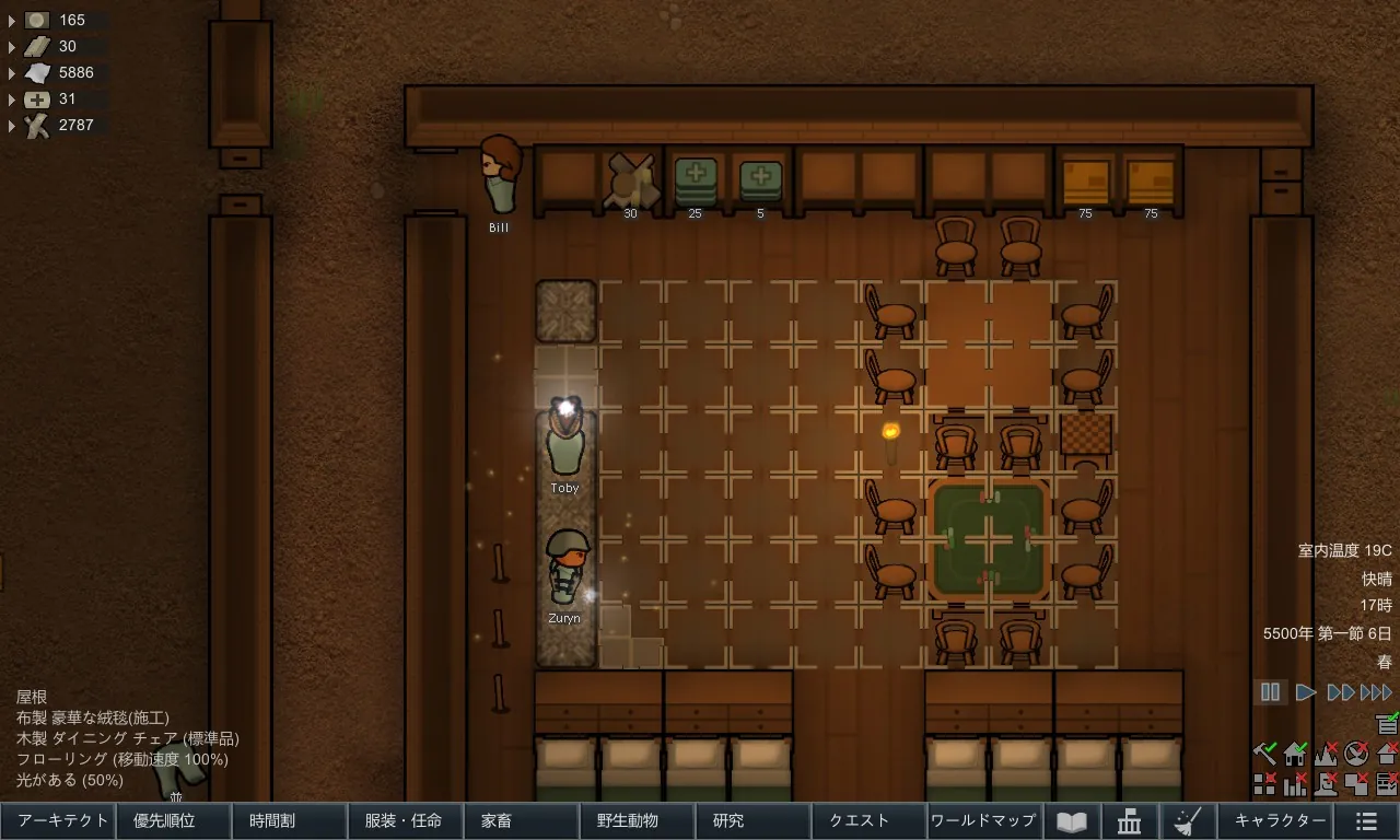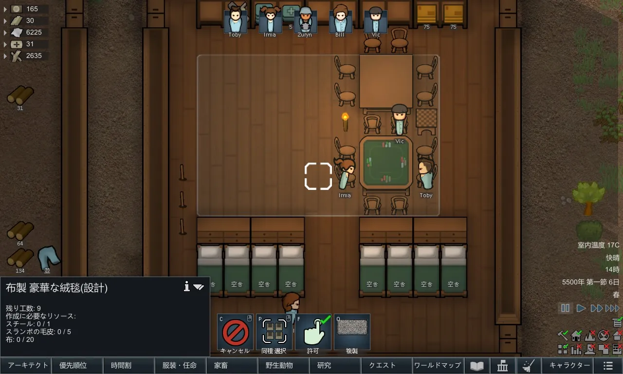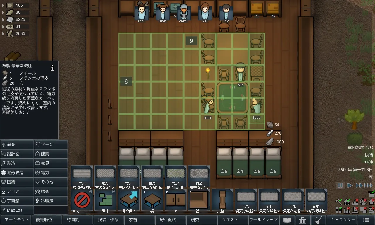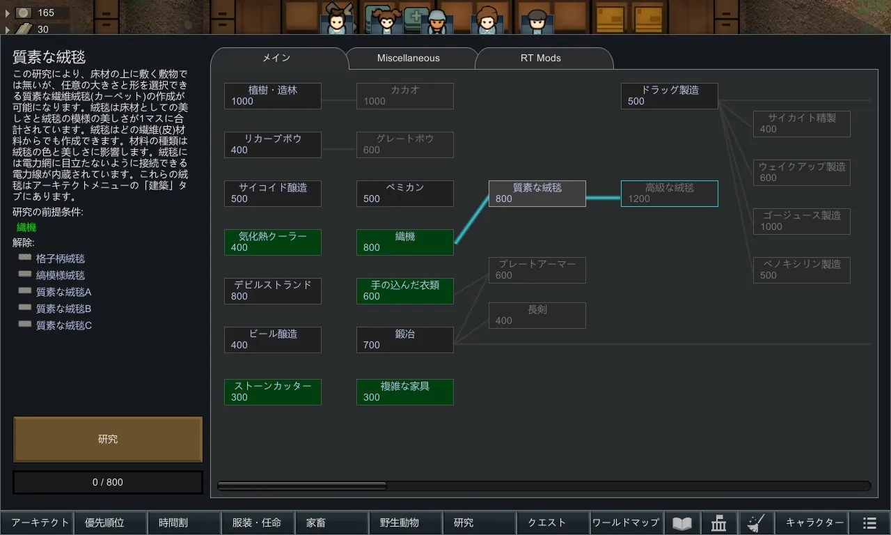 必要に応じて絨毯は上書き可能です。またすべての絨毯は、「織機」の研究を完了するとさらに研究できるようになり、それらの研究を完了させると建設できるようになります。絨毯はアーキテクトメニューの「建築」タブにあります。