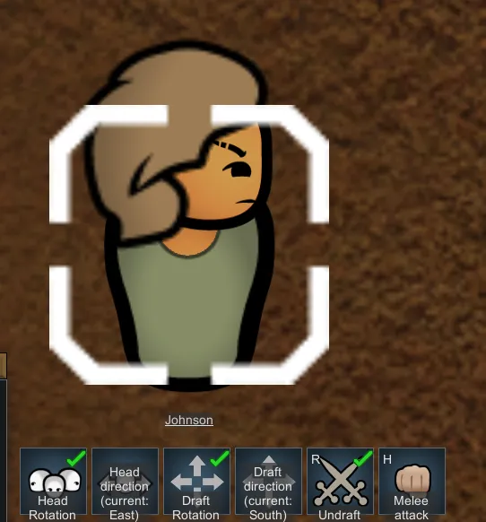 Keep your head on a swivel! This mod allows you to control your pawns body and head directions. This allows you to set up scenes in ways you could never before. Both the head direction and body direction can be enabled/disabled independently. If you don't like the clutter of having too many buttons on your draft menu you can also hide the buttons in the bottom right menu icons (See preview image)