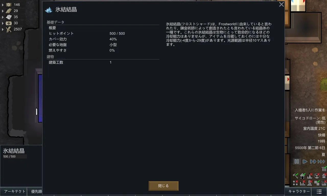 Rimworldの画像スタイルに合わせて、結晶の外観をアップデートしたり、大きさや冷却方式の種類を増やす予定です。最終的には世界生成(worldgen)にマップ構造物として追加するかもしれない。どうなるのかは私を含めて誰にも分かりませんが。
