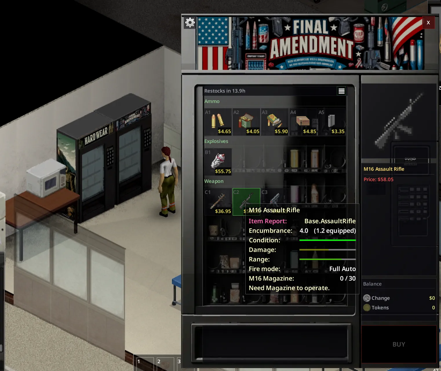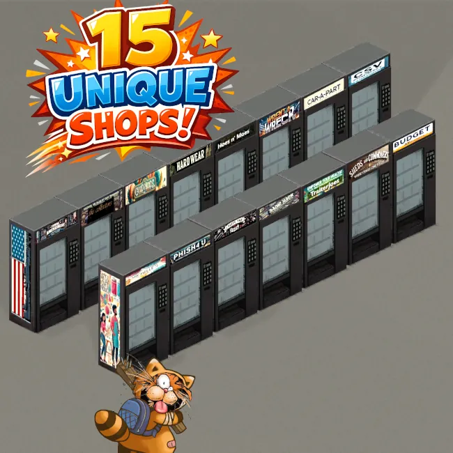 Discover themed vending machines scattered across the map. Each one is different: a gun shop in Louisville, a medical supply vendor at the hospital, a vehicle dealership on the highway, a shady pawn shop that buys your loot.