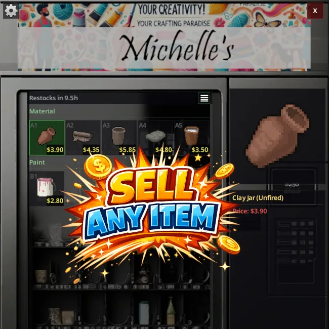 [*] [b]Works with modded items[/b]: any item in the game, vanilla or modded, can be stocked and sold