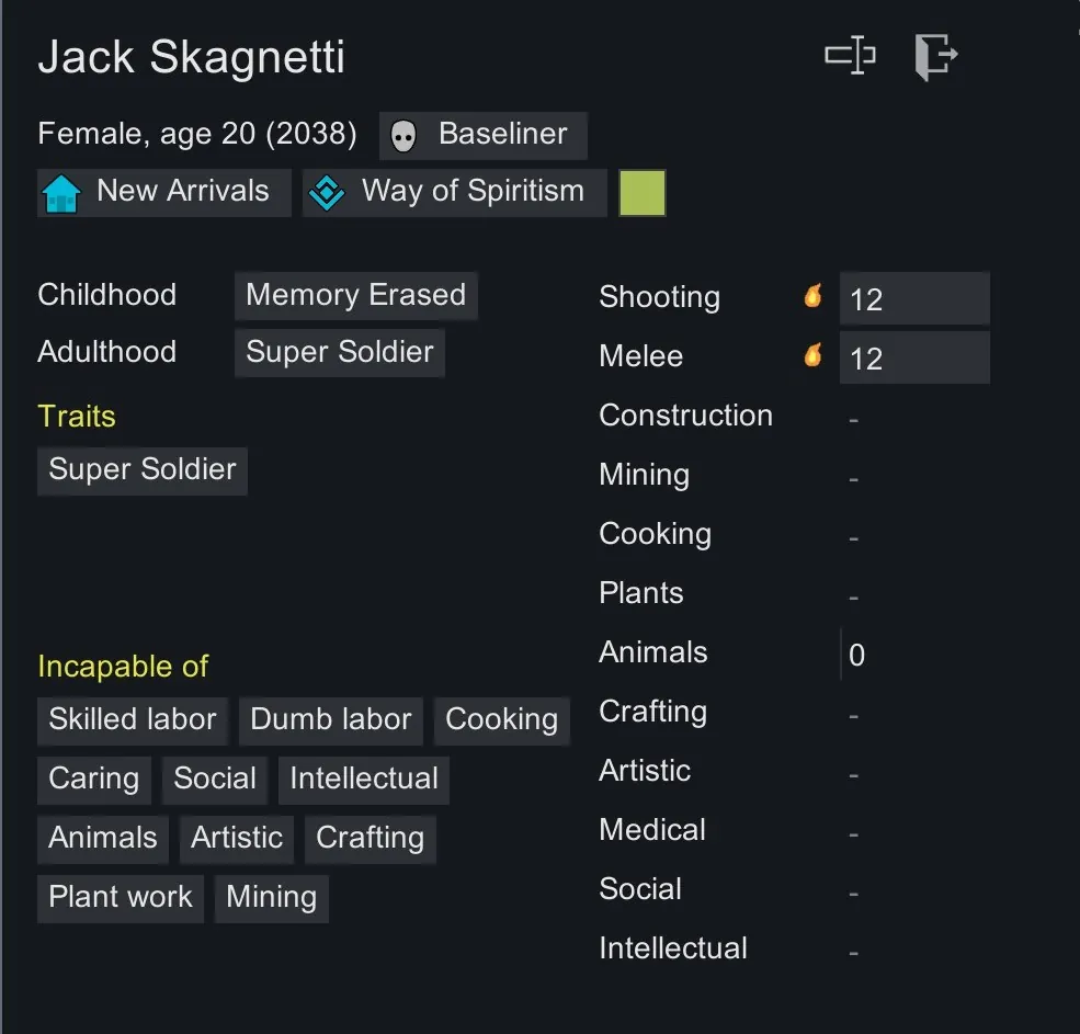 Modified individuals will have their age changed to 20 and will be unable to perform tasks other than combat and cleanup.