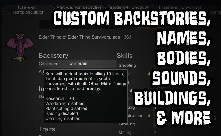 Artwork for The Elder Things was done by [b]spoonshortage[/b]. Check out more of her mods here: