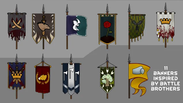 Adds to the game 11 banners suitable for both the tribe and the high-tech civilization. Art ispired by Battle Brothers game and turned into smth rimmish.