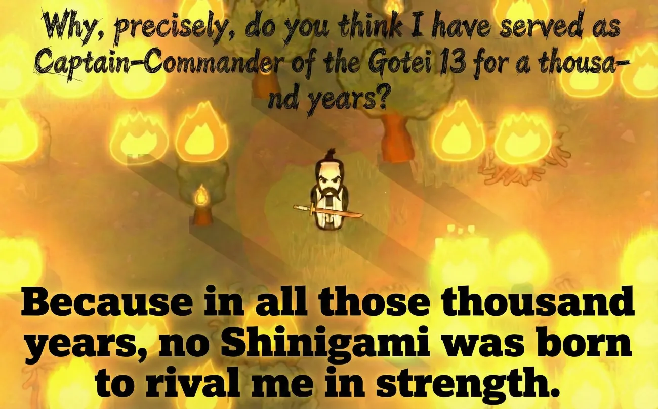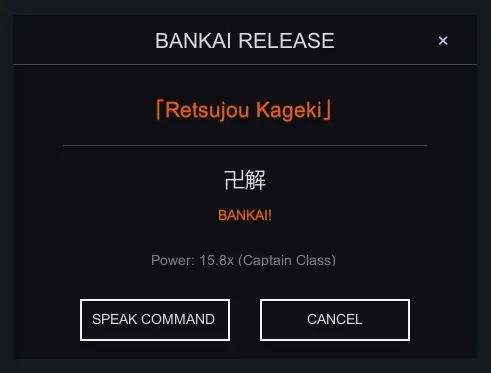 [b]Zanpakuto System[/b] Your pawns get a soul-bound sword that levels up with them. If you meditate and fight enough, you can unlock Shikai and eventually Bankai. There are over 50 unique swords, each with their own Sealed, Shikai, and Bankai models. You'll actually hear the spirit calling out to you when it's time to learn its name.