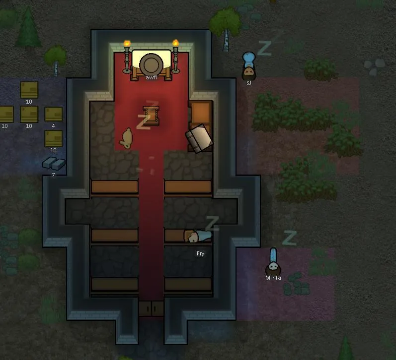 If you have any religious colonists, It’s necessary to build a church. Your colonists would be disappointed if they can’t pray in an appropriate place.You have to build an altar in the room, select a religion on it and wait for colonists to place relic on it. Your church will not be active until you place a relic on it. Build it on sculptor table, assign religion on altar - pawns will do hauling. When it’s done – the church would be completed. You can place some benches and candelabras.