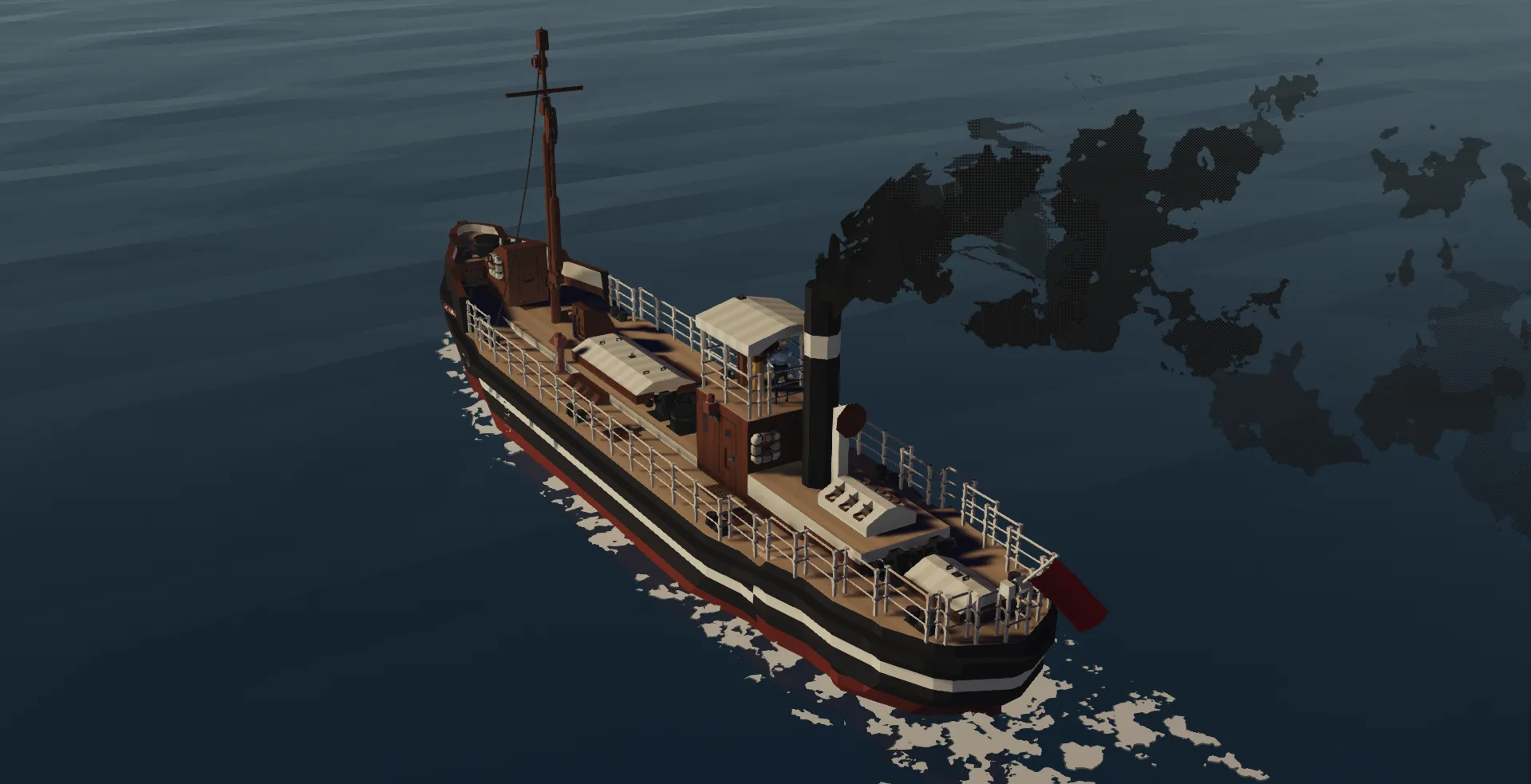 The Lorena was a small river-going freighter designed to service the Sawyer rivers and on calm weather transit the channel from Donkk to Sawyer. The Lorena was beached off the coast of southern Sawyer during a horrible storm. 2 months later, she was towed up to Olsen bay to be recommissioned.