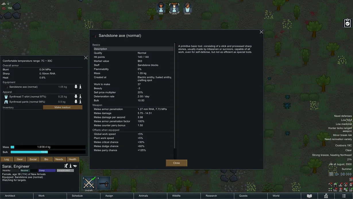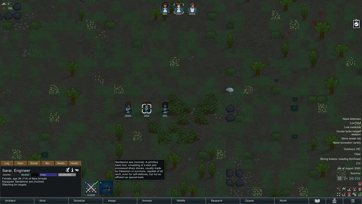 A: Supplement the missing part, because many sandbox survival games have stone axe as the initial starting tool, I think rimworld can't be absent :b