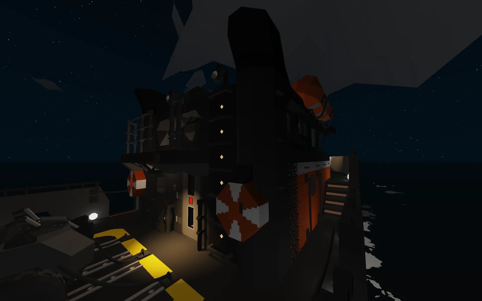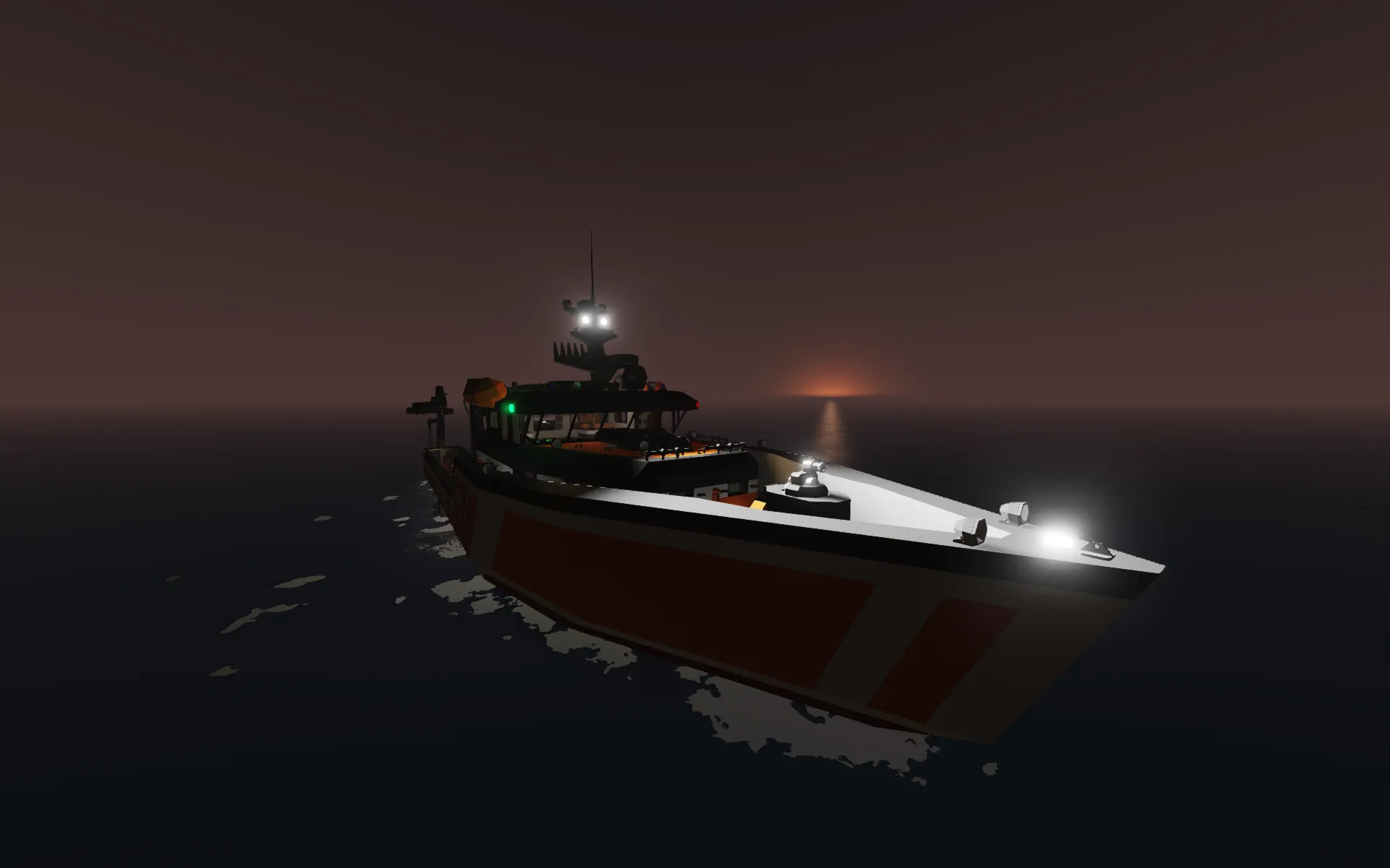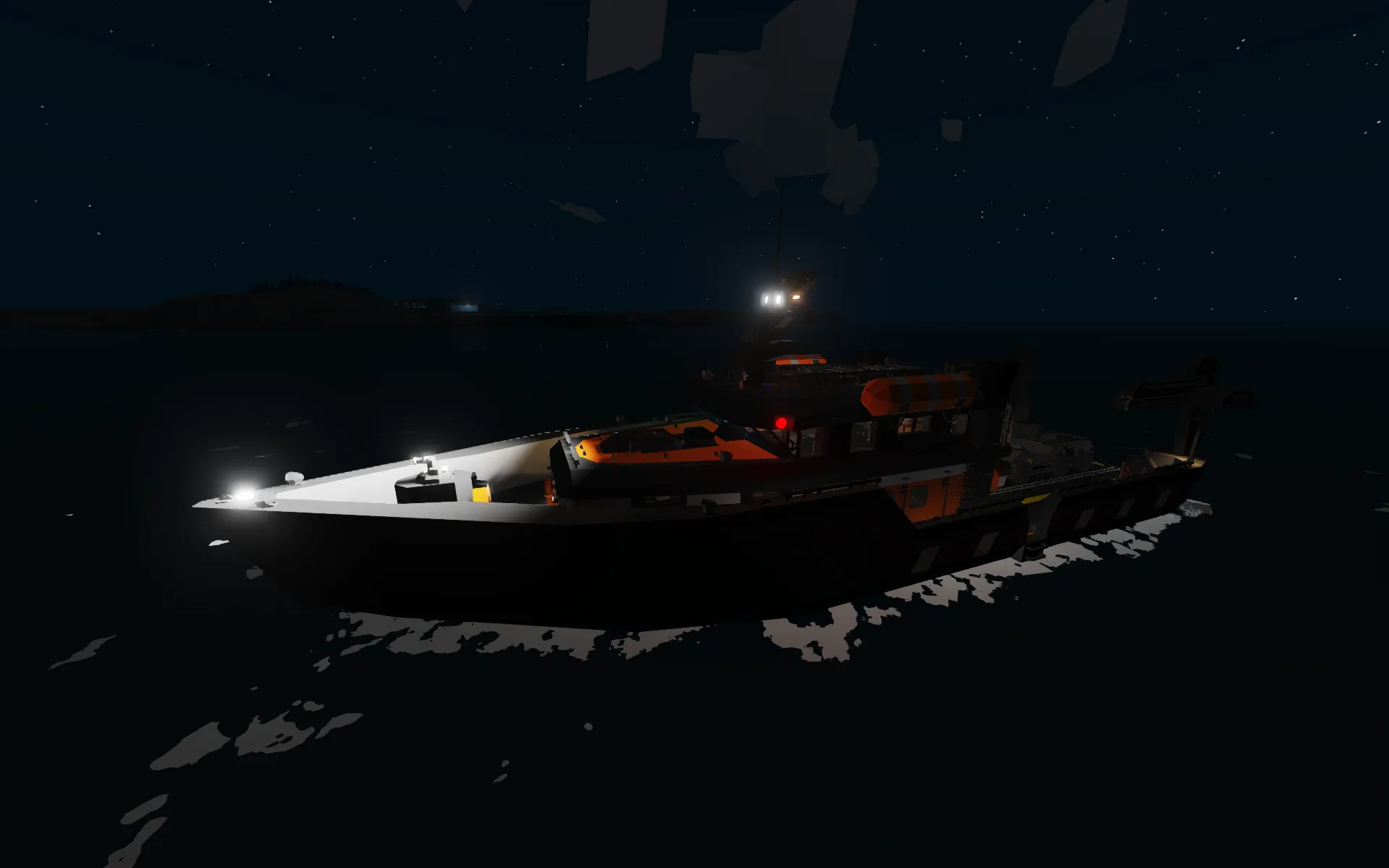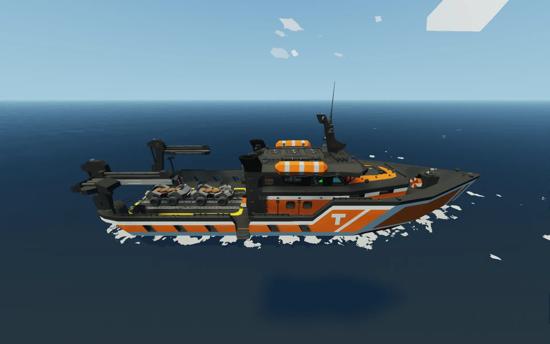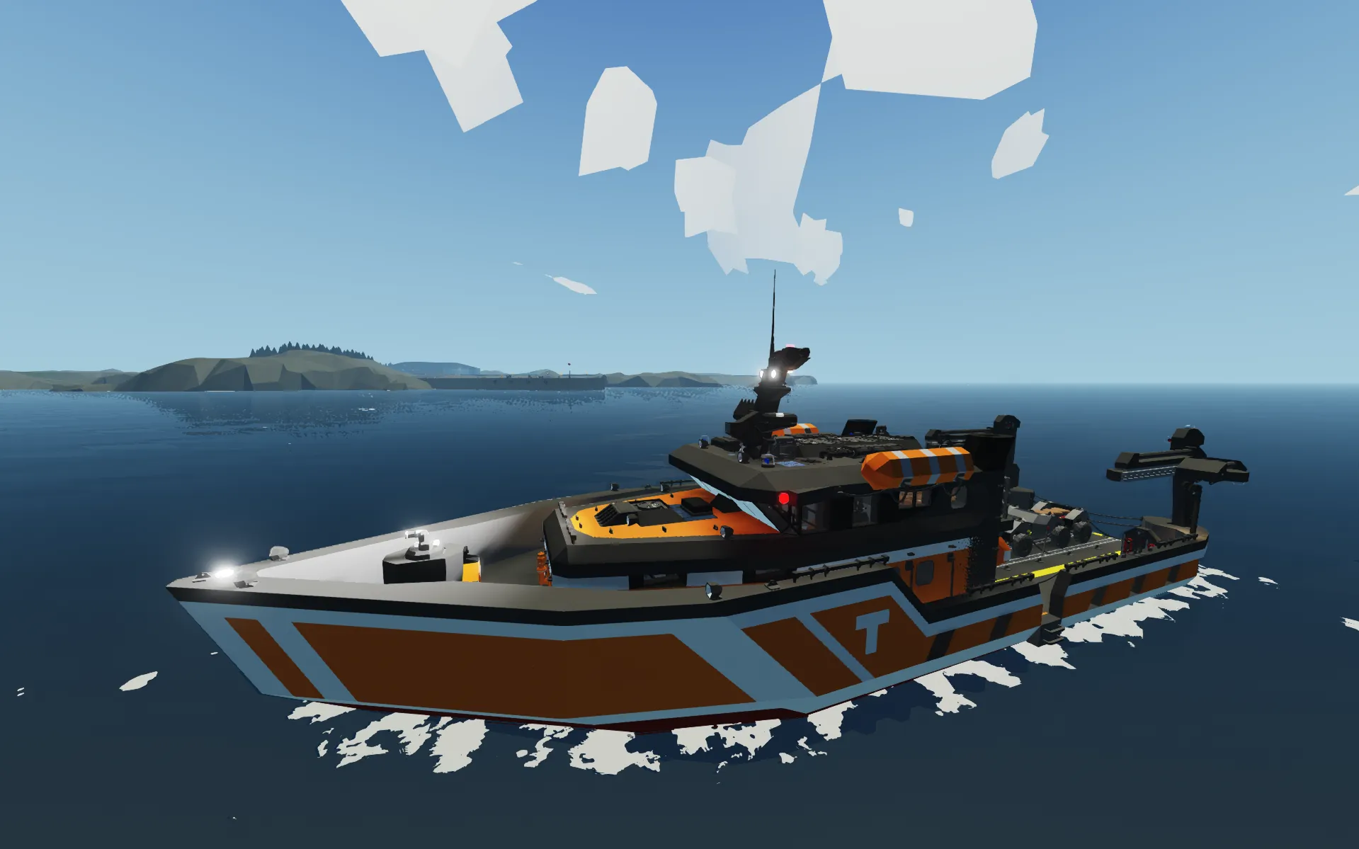 This is a highly detailed Search and Rescue (SAR) boat I created for a challenge. It is designed to transport small cargo and handle all types of emergency and rescue operations. Due to the challenge's time limit, the boat is currently not very fast, and the cooling system is underperforming; however, I plan to fix these issues in the future, along with the stability, as it can behave unpredictably in strong winds.