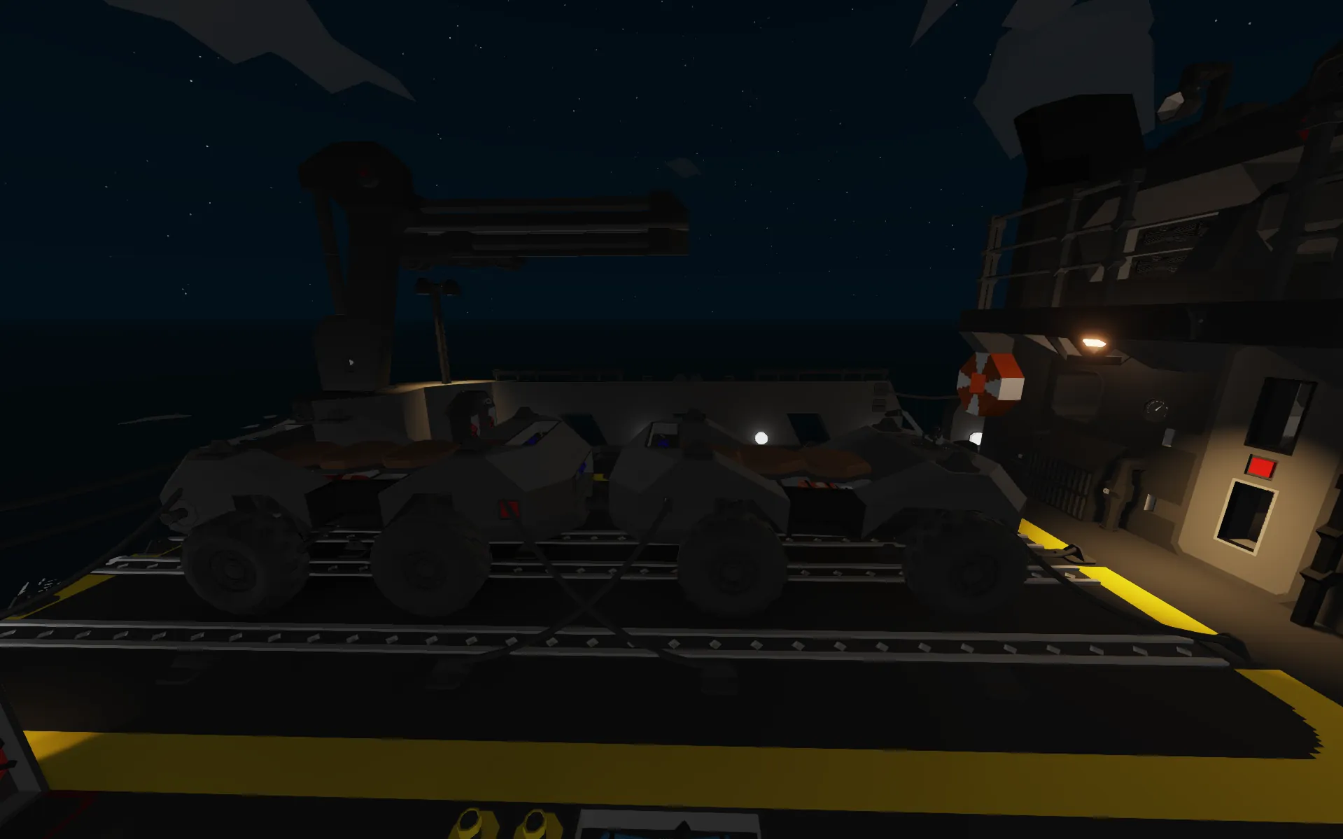 • 2 Cranes: For lifting and moving gear.