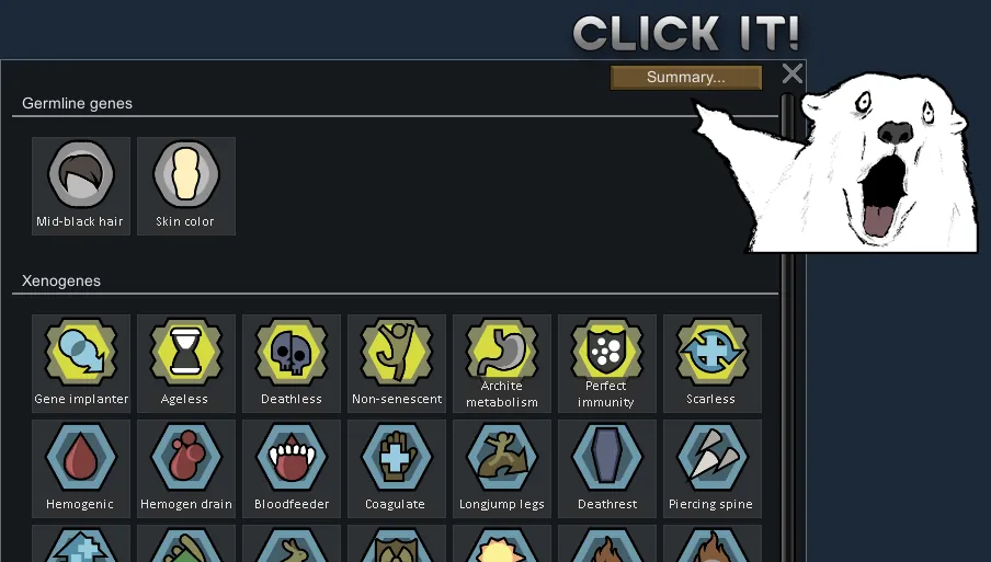 So, you’ve spent four hours crafting the perfect genetic abomination, or met a xenotype from a new mod. It has 47 genes, glows in the dark, eats exclusively through its skin, and has a metabolic efficiency of -19, and you have [i]no idea[/i] what it actually does.