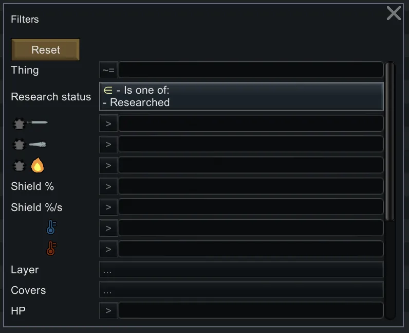 [i]A maintained fork of Stats for RimWorld 1.5 and 1.6, with inventory-aware filters, saved presets, bionics support, distance-based ranged DPS, and better handling for stuffable item variants.[/i]