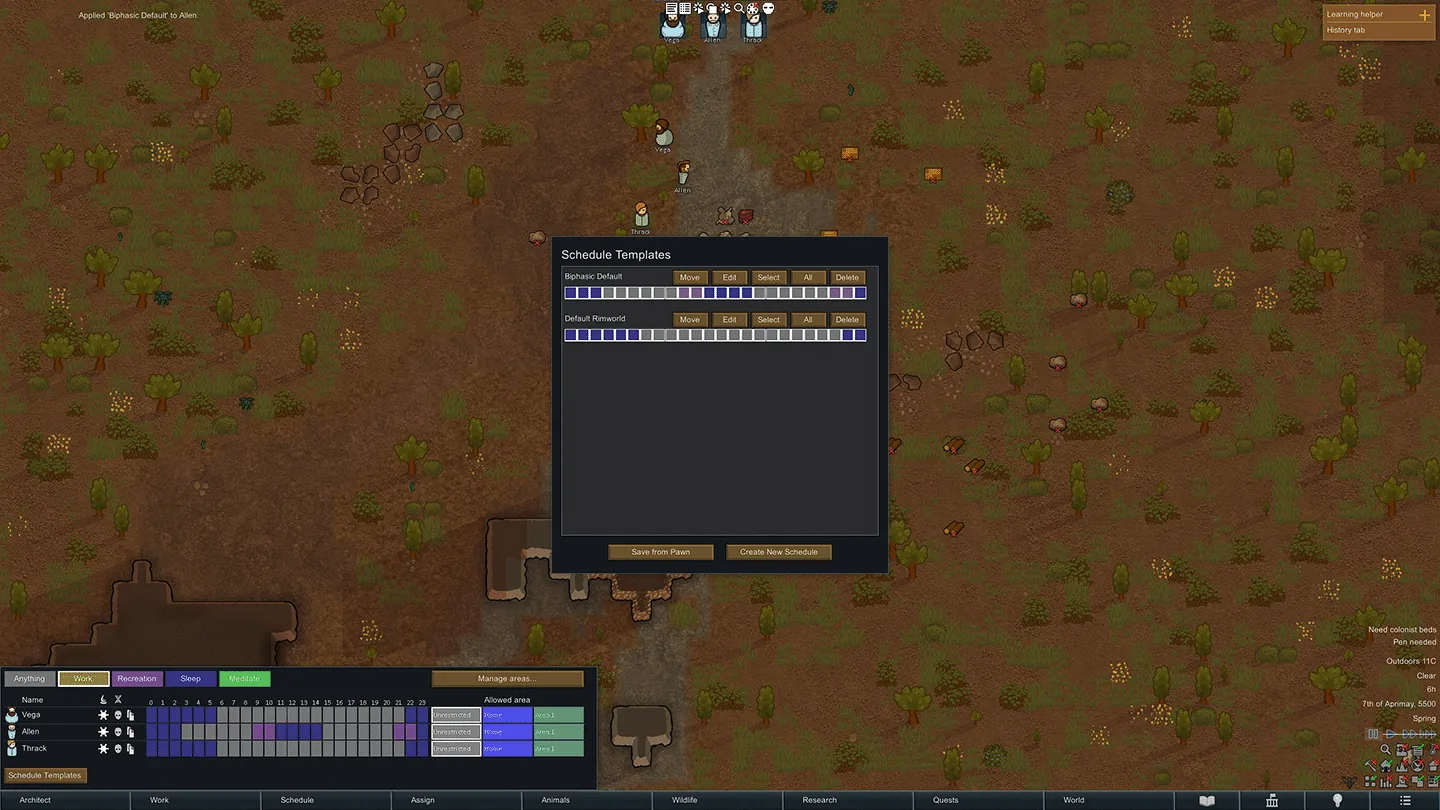 Allows you to save, load, create, and apply custom pawn schedules across saves.