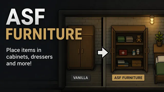 ASF Furniture adds storage functionality to vanilla furniture and furniture from some popular mods using Adaptive Storage Framework.