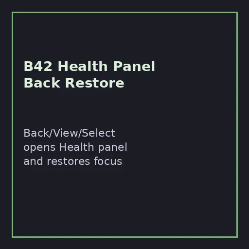 Restores opening the Health panel with the controller Back/View/Select button in Build 42.