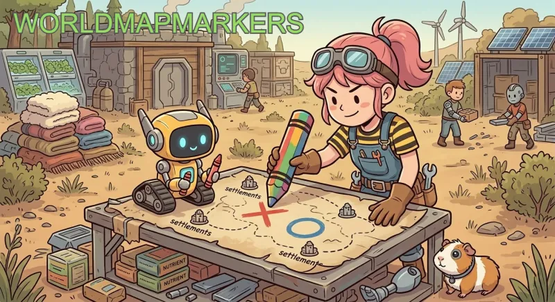 - Assign markers (Pink Square, Green Triangle, Red Circle, Blue X) to any settlement or tile
