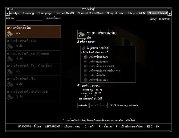 Mod นี้ใช้เงินในการซื้อขายของได้ 1.ต้องมีskill หาของ=4 ,skill ไฟฟ้า=4 2.ต้องการวิทยุสื่อสาร 3.ต้องสร้างเสาวิทยุกำลังสูง(หน้า Craft งานไฟฟ้า) Shop ที่อยู่หน้า Craft ถึงจะปลดล็อค (ร้านค้ารับเฉพาะเงินสด) ถ้ามีเงินมากไป สามารถแลกเป็นบัตรเครดิตได้ เพิ่อลดน้ำหนักในการเก็บ(เวลาซื้อของก็เอาบัตรเครดิตไปแลกเป็นเงินสดอีกครั้ง) ****ถ้าน้ำหนักตัวมากไป หรือของในตัวมากไป จะไม่สามารถ Craft เสาวิทยุได้*** ให้เอาของวางที่พื้นแล้ว Craft แทน*** ถ้ามีเงินเยอะ ไปแลกเป็นบัตรเครดิตได้ เพิ่อลดน้ำหนักในการเก็บ -ขายผักที่ปลูก ขายเนื้อสัตว์ที่ล่าได้ -ขายเครื่องประดับ ขายเศษเหล็ก -ซื้อปืน กระสุน (รองรับ Brita Weapon MOD) -ซื้อขาย ของแต่งปืน (รองรับ Brita Weapon MOD) MOD นี้แปลไทยนะครับ Workshop ID: 3711347233 Mod ID: Money Trade_TH Workshop ID: 3711347233 Mod ID: Money Trade_TH
