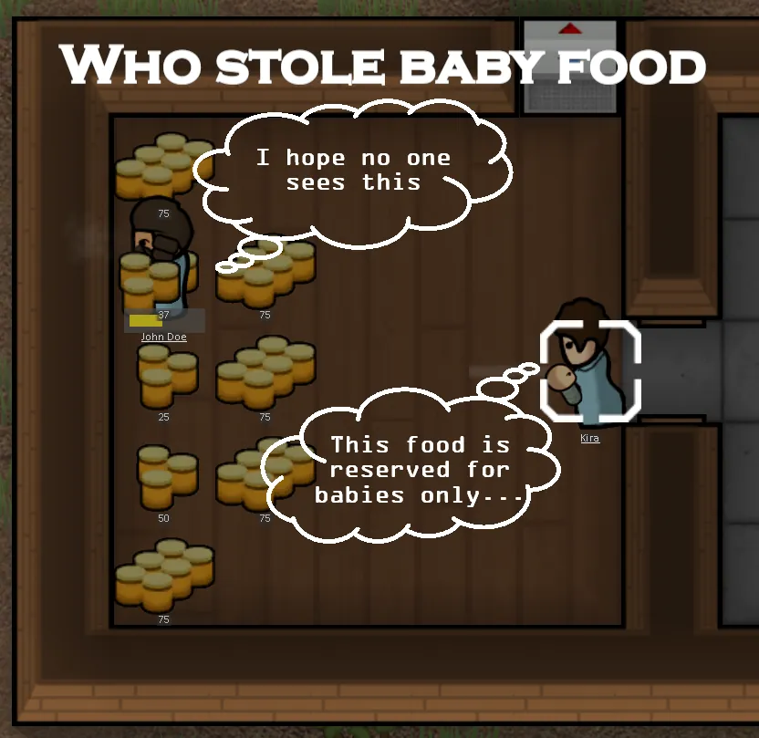 Your carefully assigned baby nutrition ends up in the stomach of a random pawn who walked past the stockpile.