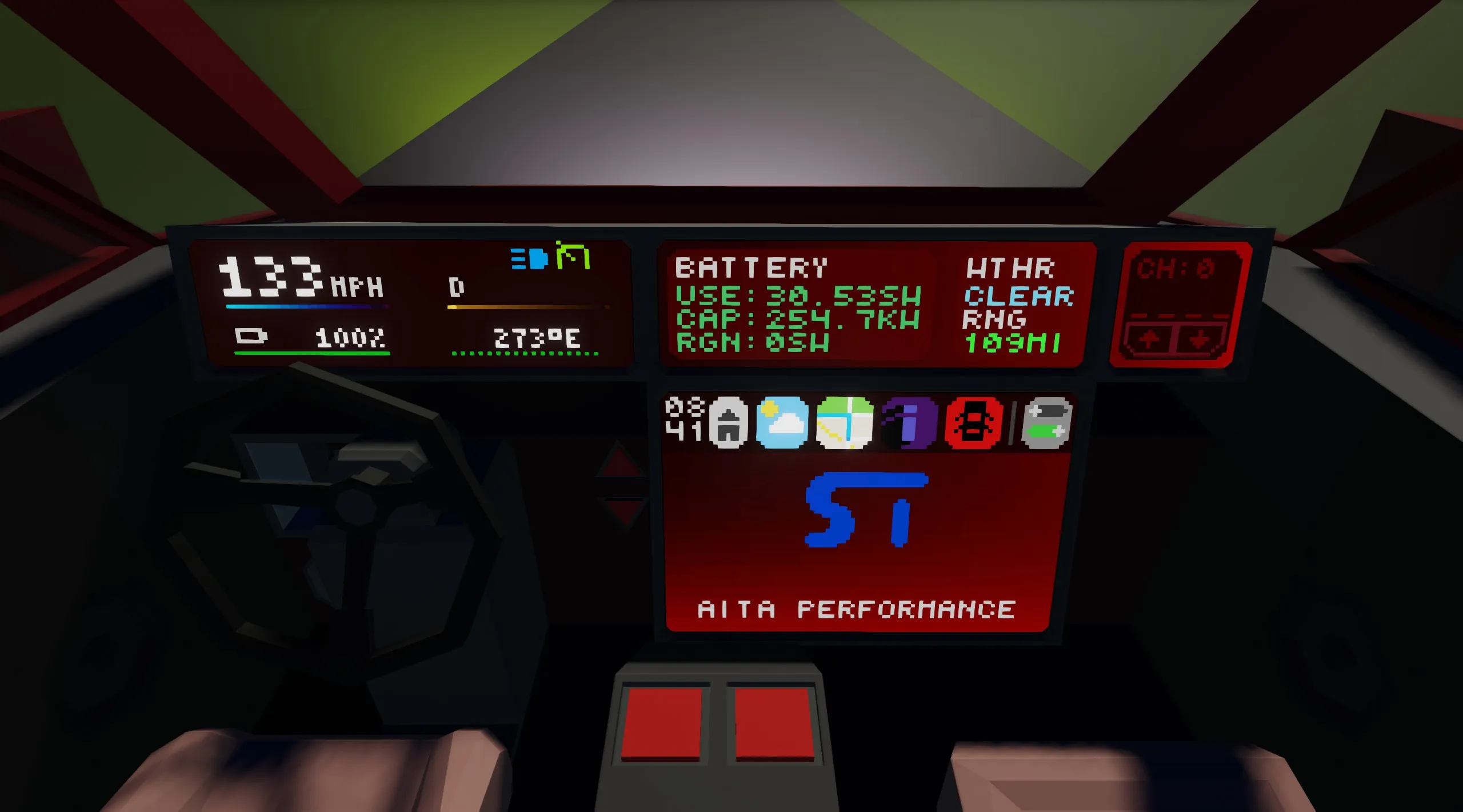 At the heart of Aita Performance is the same SEV platform that powers Aita. A simulated high voltage battery powers the drive units and gives Aita a realistic battery experience and range. Regenerative braking captures up to 20% of the energy of the vehicle to extend range and give the car a great driving experience, along with new Ackermann steering geometry.