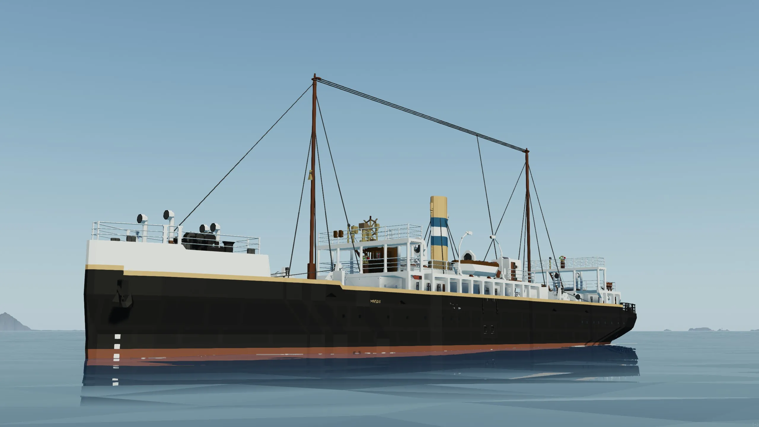 The SS Maasdijk is a Dutch steamship from the early 20th century that was designed as a cargo passenger ship to transport people from the Donkk isles to the Neder-Sawyer province in southern sawyer.