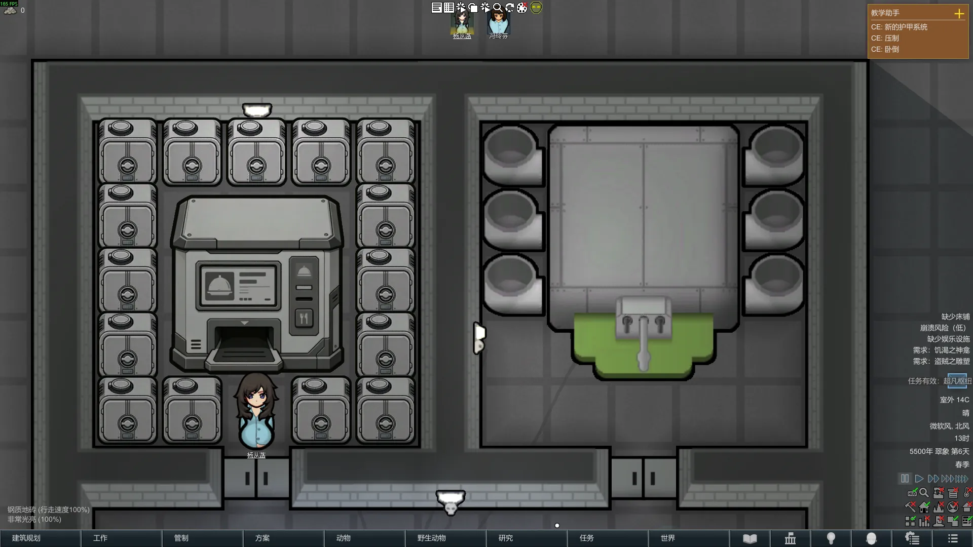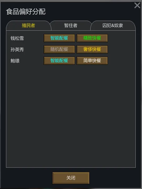 ✅ 智能餐饮:人人都可以自助优先选择自己喜欢吃的食物,就像食堂打饭一样,再也不用为了吃到不喜欢的食物而降低心情,针对每个居住者/访客/囚犯奴隶,都可以单独设置餐饮等级:简单快餐/精致快餐/奢侈快餐,以及是否食使用智能配餐逻辑。