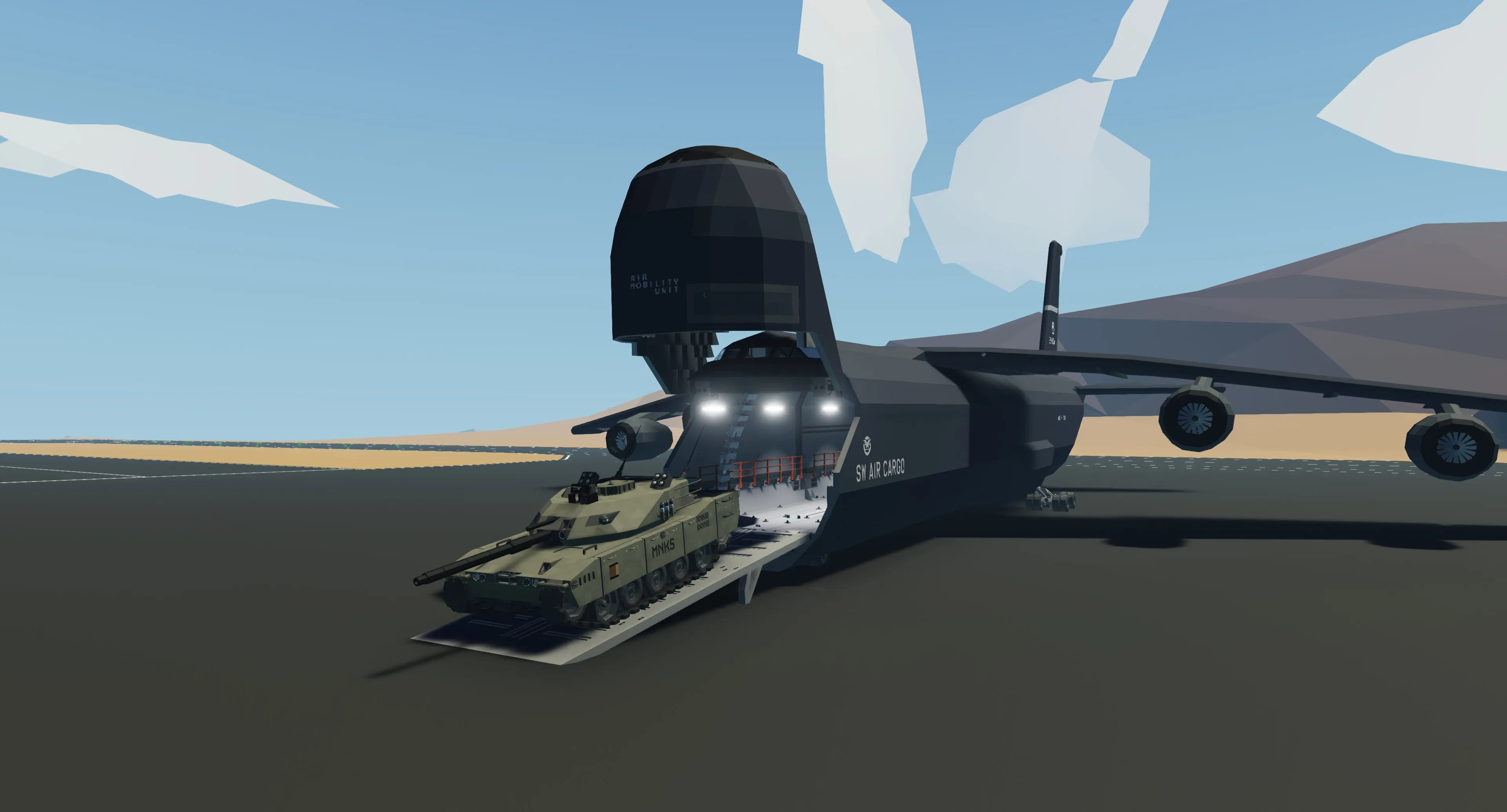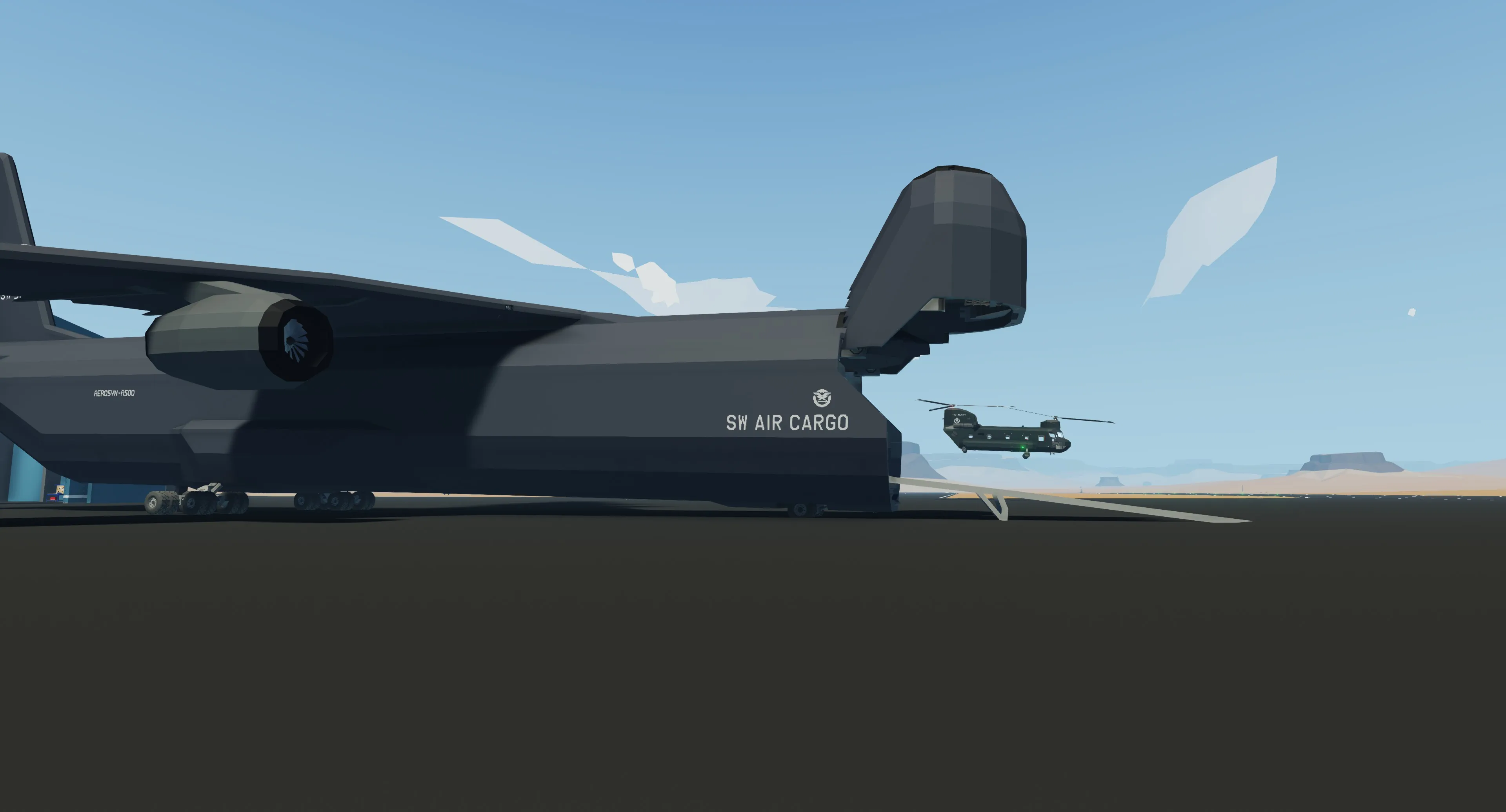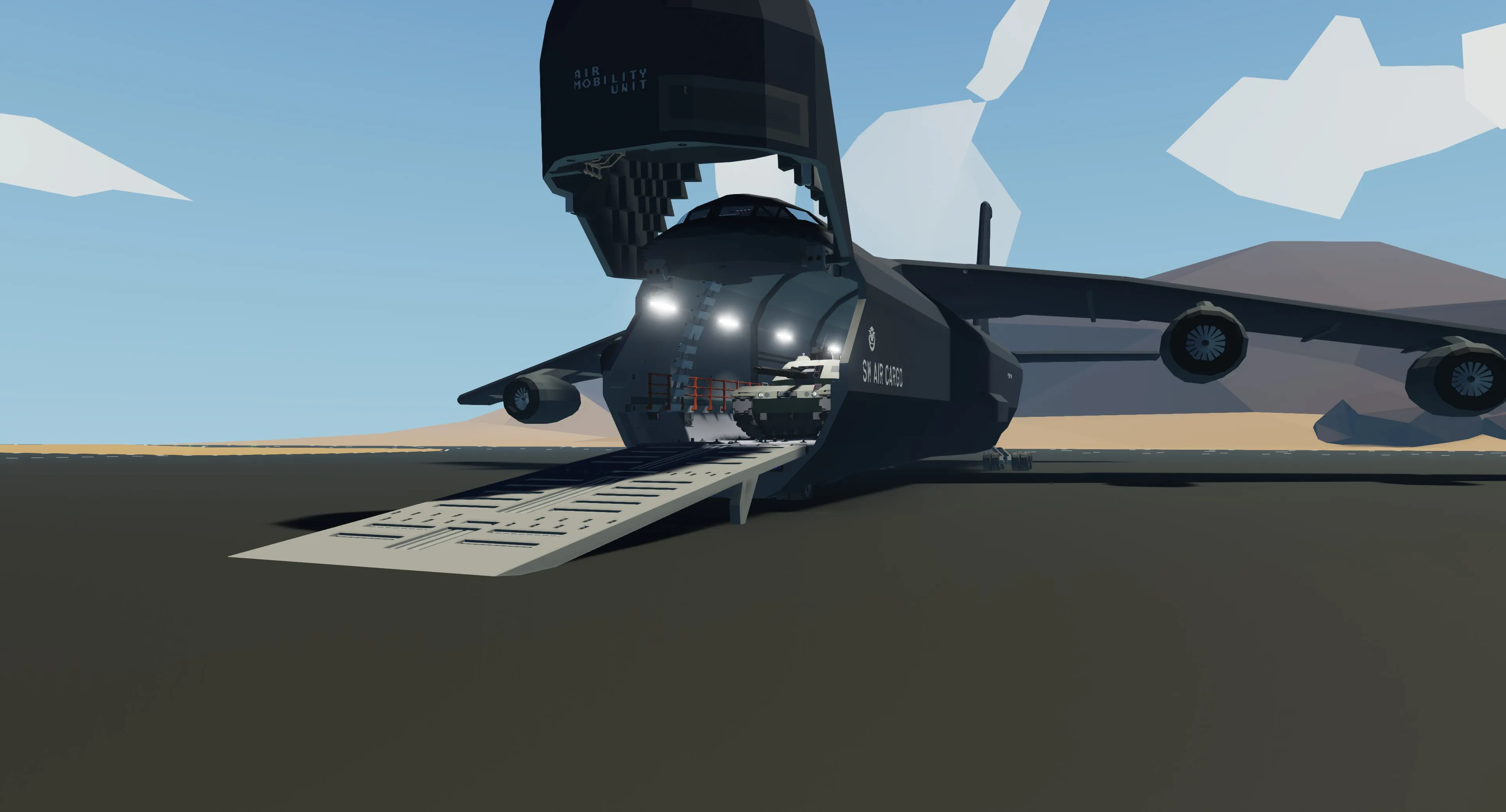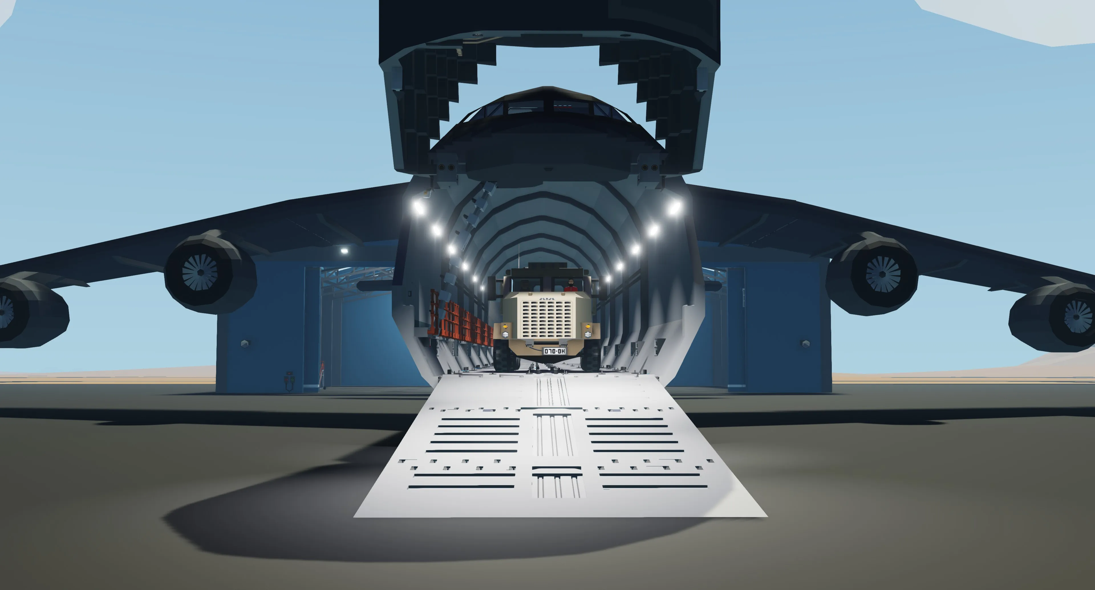 This aircraft was inspired by the C5 Galaxy, but I didn't want it to be exactly like it.