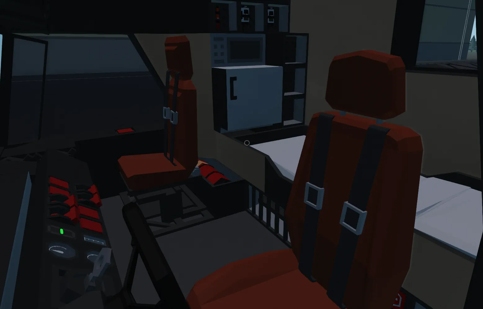 Blinkers, Hazards, roof warning lights, FogLights, Rear Spot lights, Mini Map, Bed, Handheld radios, first aid, fire extinguisher/welder, NN-Link radio (map removed), Cab Tilt, Extra aux cable conectors for both HGS and SIBTaT, and more!
