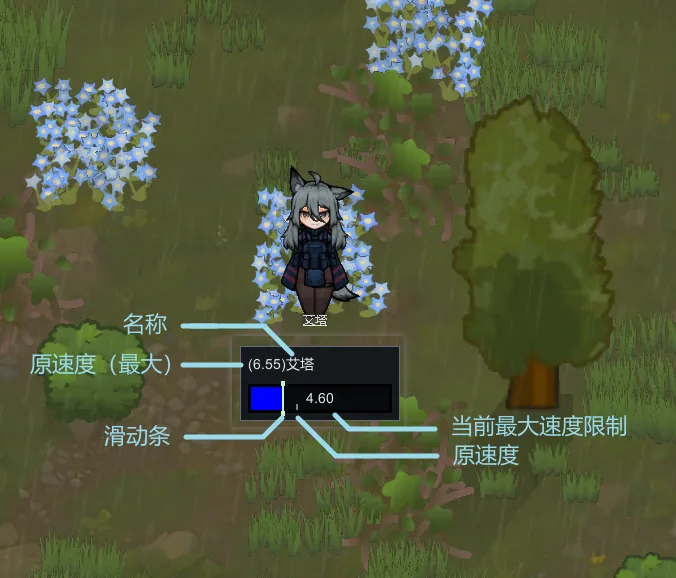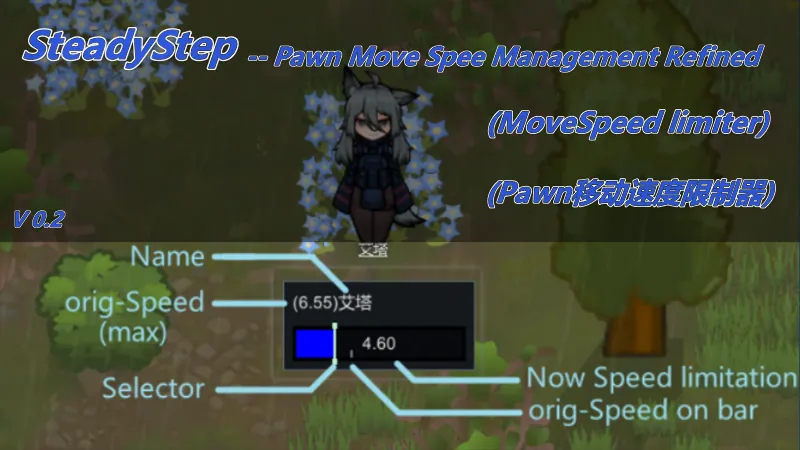 [b]简而言之:[/b]这是一个通过Harmony补丁限制Pawn最大移动速度的模组,通过一个便于操作的Gizmo Slider (形式类似运输仓燃料加注器的燃料滑条)进行控制。