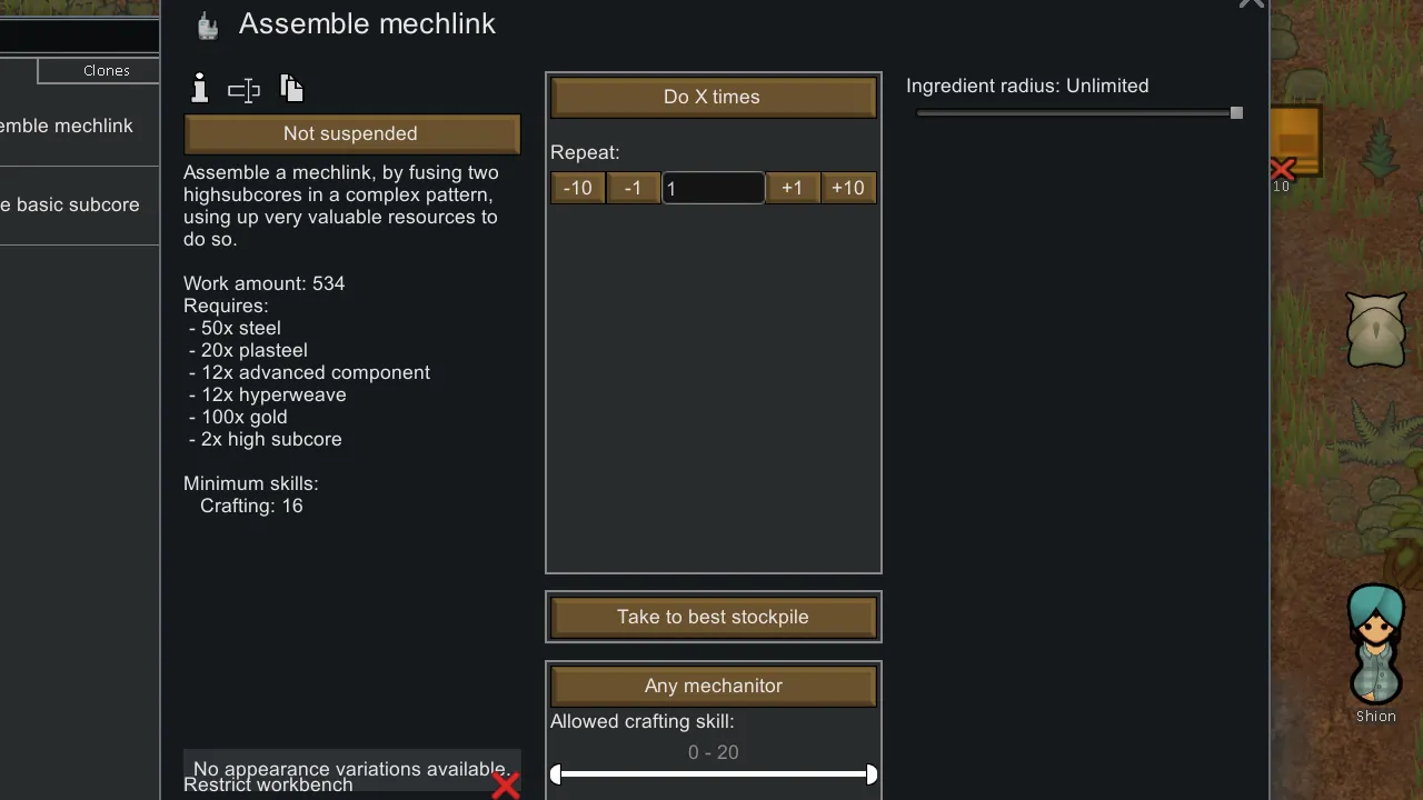 Adds an expensive recipe for the mechlink and a research for it on top. You make the mechlink on the subcore encoder.