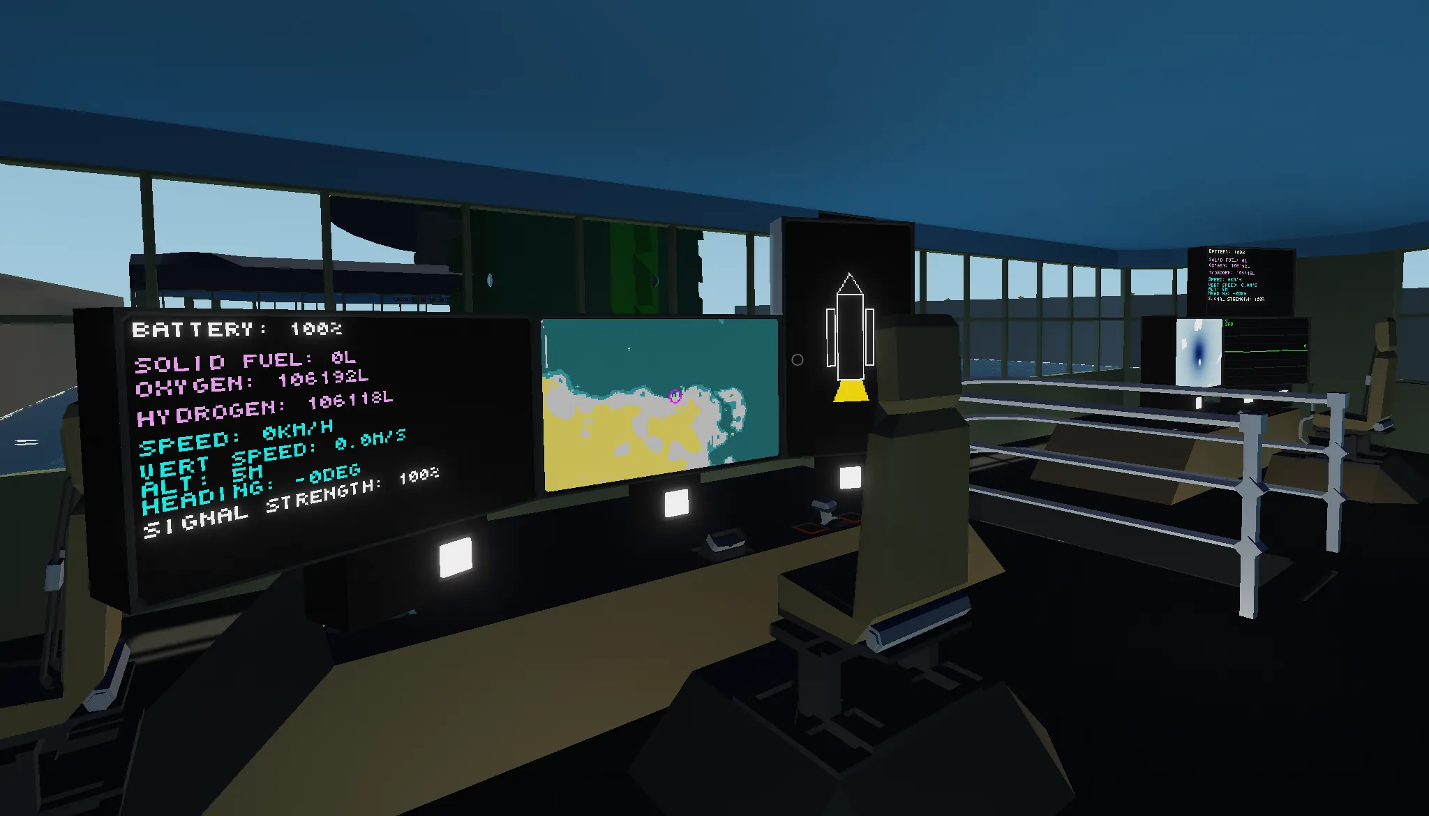 4. Ha a hajó megállt üljünk bele a jobb oldali székbe, majd nyomjuk meg a bal oldalon lévő "Launch & Engine" gombot. Ezután W/A/S/D-vel irányítható a rakéta.