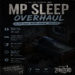Overhauls MP sleep mechanics: sleep anytime, auto-wake on nearby zombies (untested), pain reduces rest quality (untested). Workshop ID: 3713813188 Mod ID: SimplySleep