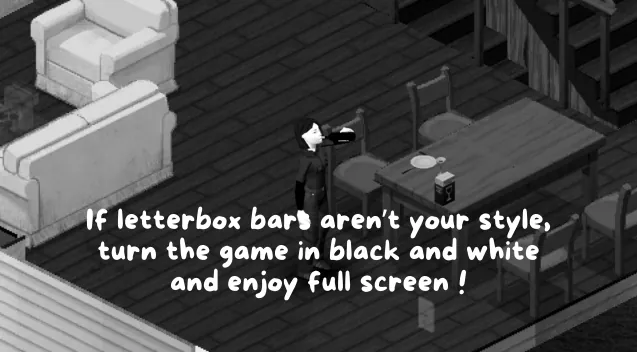 - Des bandes noires de cinéma (de taille réglables via les Mod options du menu Pause)