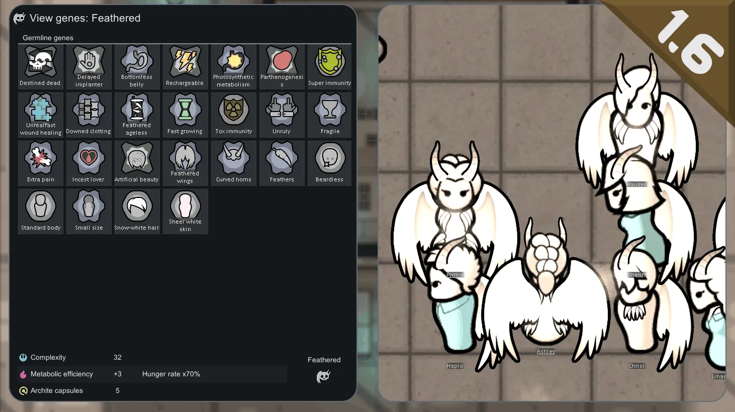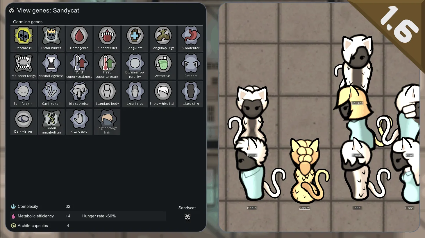 [url=https://steamcommunity.com/linkfilter/?u=https%3A%2F%2Fgithub.com%2FWVCSergkart%2FWVC_RacesBiotech%2Fwiki%2FGenes-%28WIP%29]Genes wiki (WIP)[/url][github.com] and [url=https://steamcommunity.com/linkfilter/?u=https%3A%2F%2Fgithub.com%2FWVCSergkart%2FWVC_RacesBiotech%2Fwiki%2FXenotypes]xenotypes wiki.[/url][github.com]