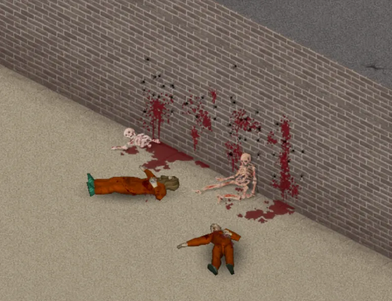 Added more tiles! Namely more corpse tiles, bullet hole tiles, footprints, tire skid marks, animals and a few vaultable roadblock tiles.