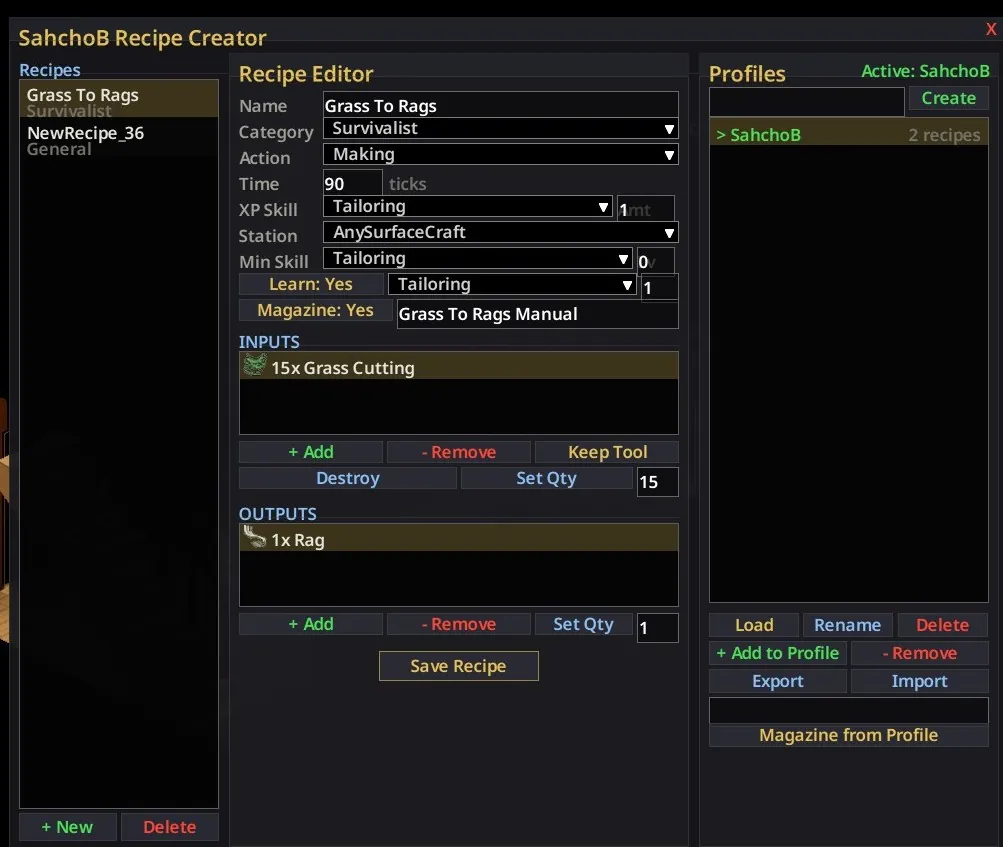 [*] Click [b]Give Profile Mag[/b] to spawn a combined magazine with all profile recipes