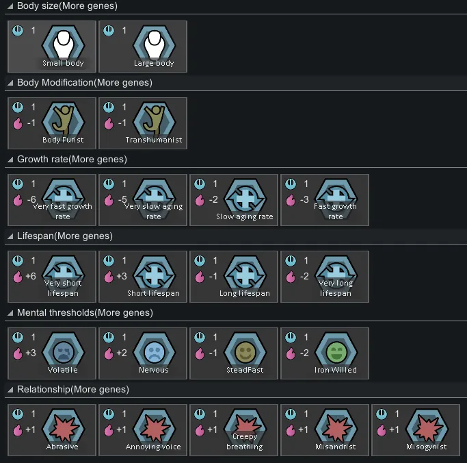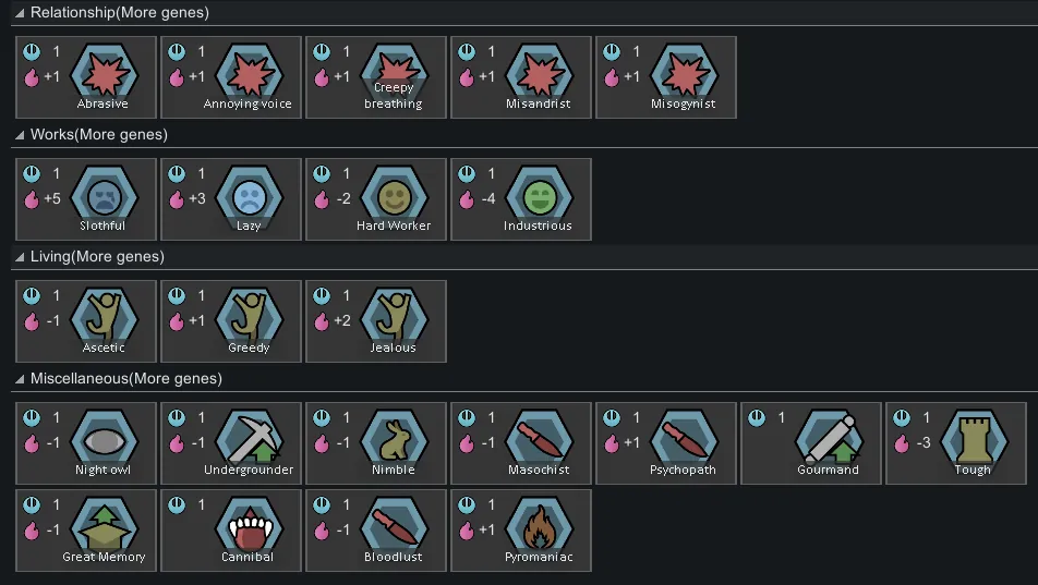 A simple mod that add more genes about vanilla traits, health, and immute.