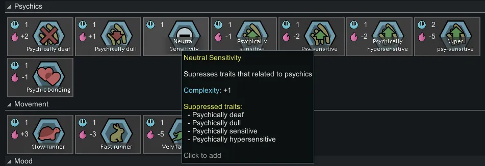 * Neural Psychics trait to suppress other psychics related traits.(I really need this)