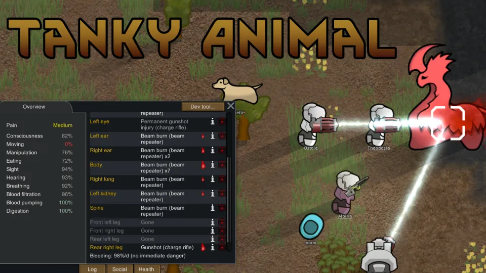 basically, as long as animal Consciousness still above 30%, no matter the injuries, even with missing limbs, they still got a fight in them till their last breath.