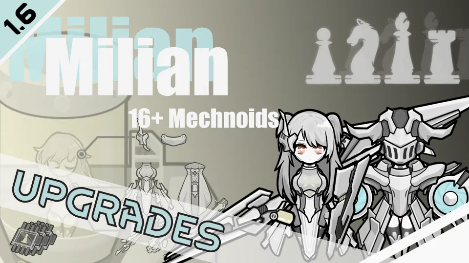 4 different Implants (stackable) boosting the capabilities of Milians and Mechanoids, from Combat, Work upgrades to powerful Shield and Jetpack.