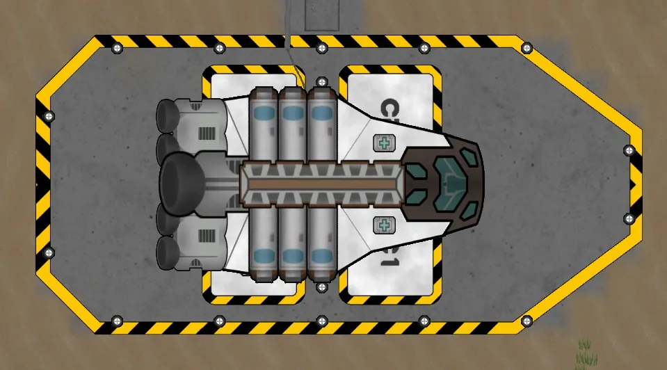 - cargo spaceship: will periodically land to trade few bulk goods.