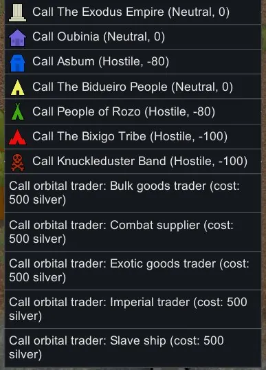 - Can enable/disable orbital trades from this mod's settings when Trader Ships is enabled